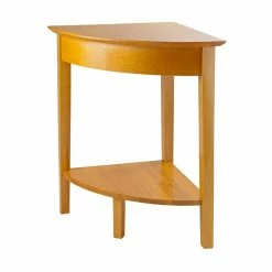 Buy 👏 Other Shapes – End Tables & Side Tables Leick Home Coastal Wedge Table With Shelf, Pecan 🥰