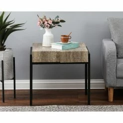 Promo ๐งจ Rectangle End Tables & Side Tables LuxenHome Rustic Oak Wood And Metal End Table ๐ฏ