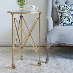 Buy ✨ A & B Home Round End Tables & Side Tables A & B Home Glass Topped Rolling Side Table 🌟