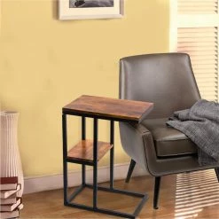 Buy ๐งจ Rectangle End Tables & Side Tables Benzara Classic Brown Wooden Top Snack Table ๐