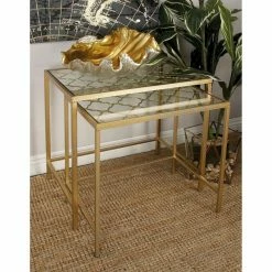 Flash Sale ✔️ Rectangle End Tables & Side Tables DecMode Glass Top Nesting Table – Set Of 3 🔥