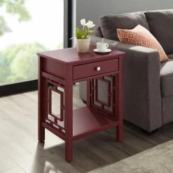 Discount ✔️ Rectangle End Tables & Side Tables Linon Williams Single Drawer End Table – Merlot 🛒
