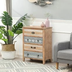 Discount ๐ Rectangle End Tables & Side Tables LuxenHome Natural Wood 4-Drawer End Table ๐งจ