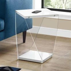 Promo 😀 Rectangle End Tables & Side Tables Monarch Specialties Glass Top C Shaped End Table ✨