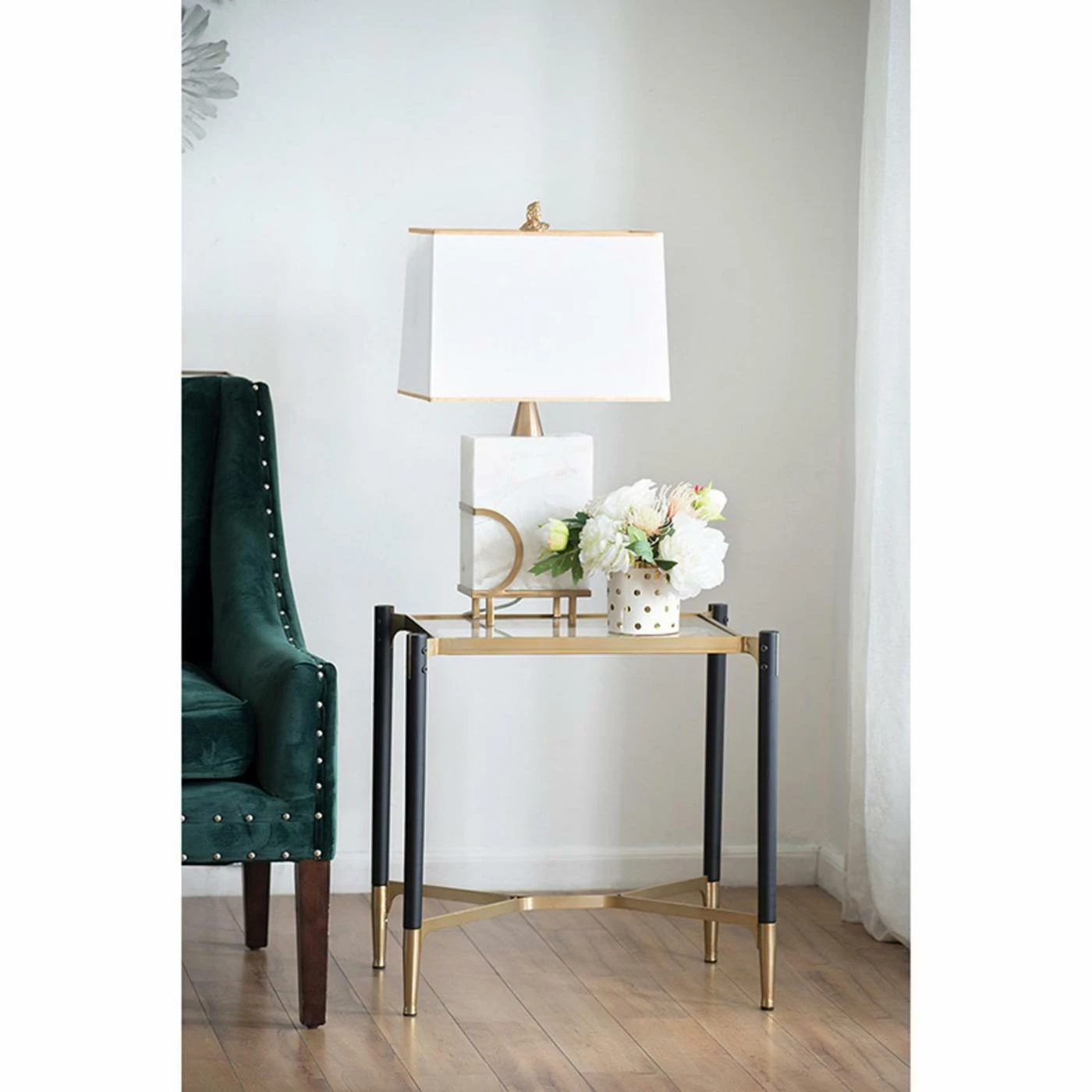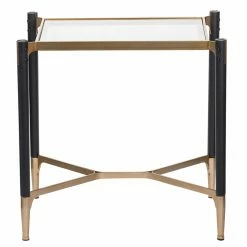 Make a sleek and modern statement with the A and B Home Park View Occasional Table, which is featured in a clean, contemporary silhouette. This stylish occasional table is adorned with a clear glass top, and the durable legs are finished in black with gold accents for a truly luxe vibe.