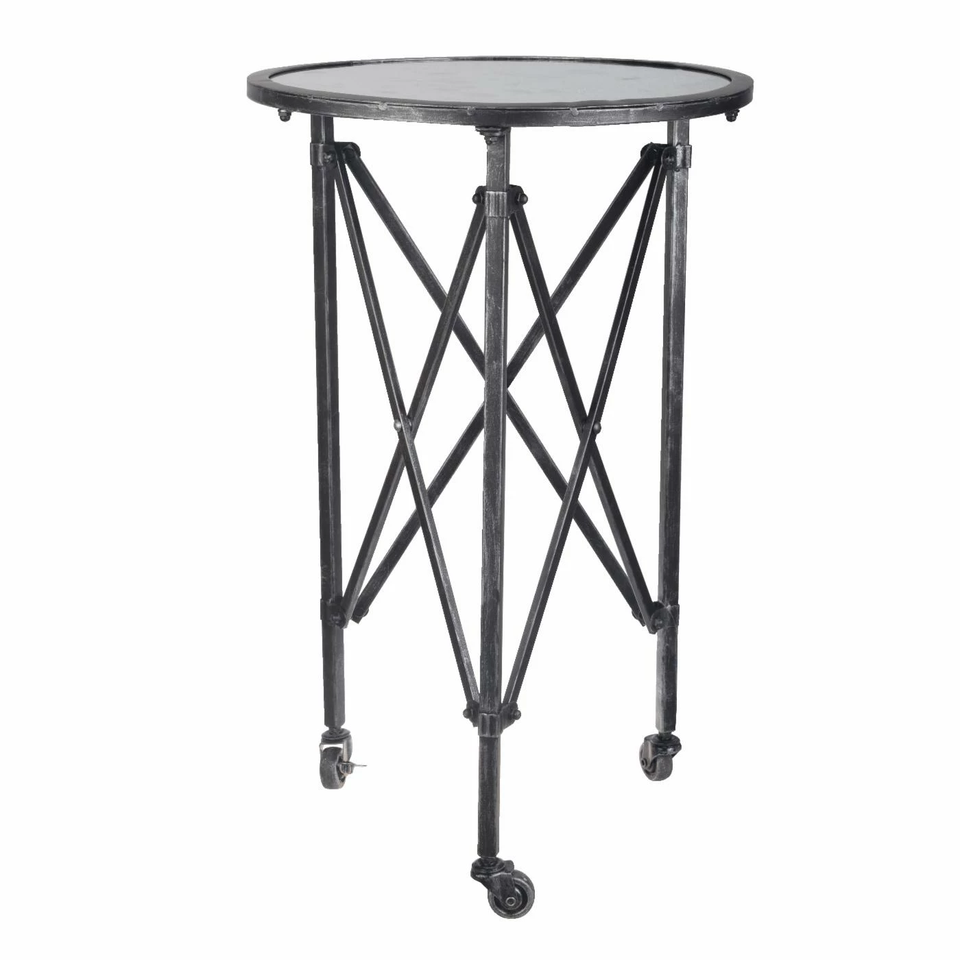 Whether you’re a fan of constant redecoration or just can’t decide what your style is this week, the A and B Home Side Table is a piece you can take with you throughout your design journey. With its three casters and X-shaped crossbar details, this table can take you from steampunk to glam to industrial and everywhere in between. And the tempered glass tabletop makes the perfect resting place for a small lamp, a drink, or your current read. Choose from the available colors to suit your tastes. Some assembly required.