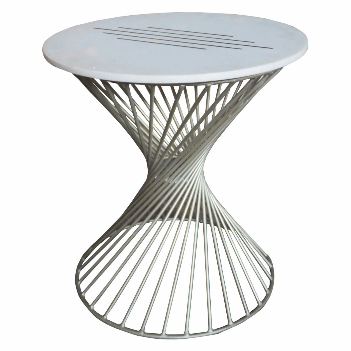 Bars of solid iron twist and turn along the base of the A and B Home Marble Top End Table, bringing a sense of motion to contemporary seating areas. The tabletop is crafted out of luxurious genuine white marble, adding a touch of elegance to the modern design. Silver stripes along the tabletop make the table visually appealing even when you leave the top completely bare.