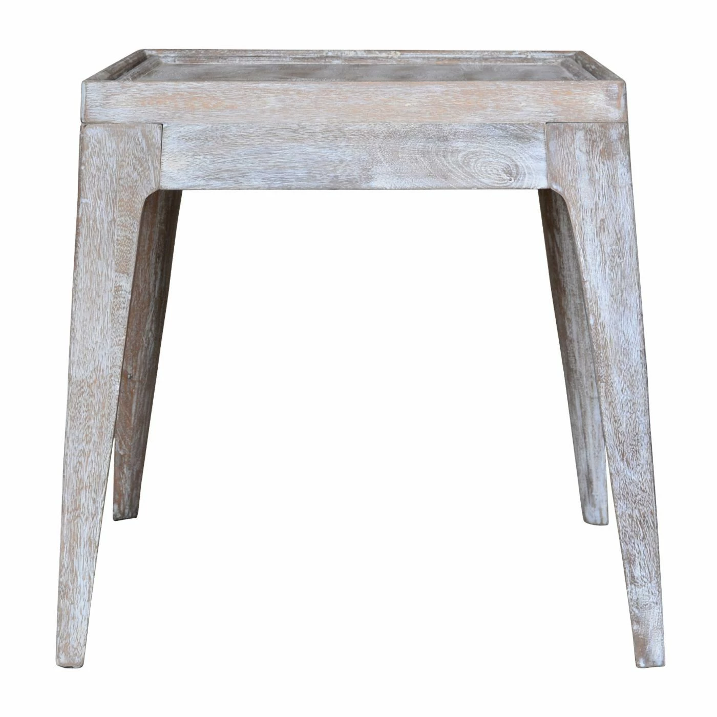Infuse your space with a quaint, rustic vibe with the cottage styling of the A and B Home Rafferty Side Table. This table showcases nature-inspired woodgrain texture with an eye-pleasing burnt white finish. Its tapered legs and raised rim elevate the visual charm of this sturdy home accent.