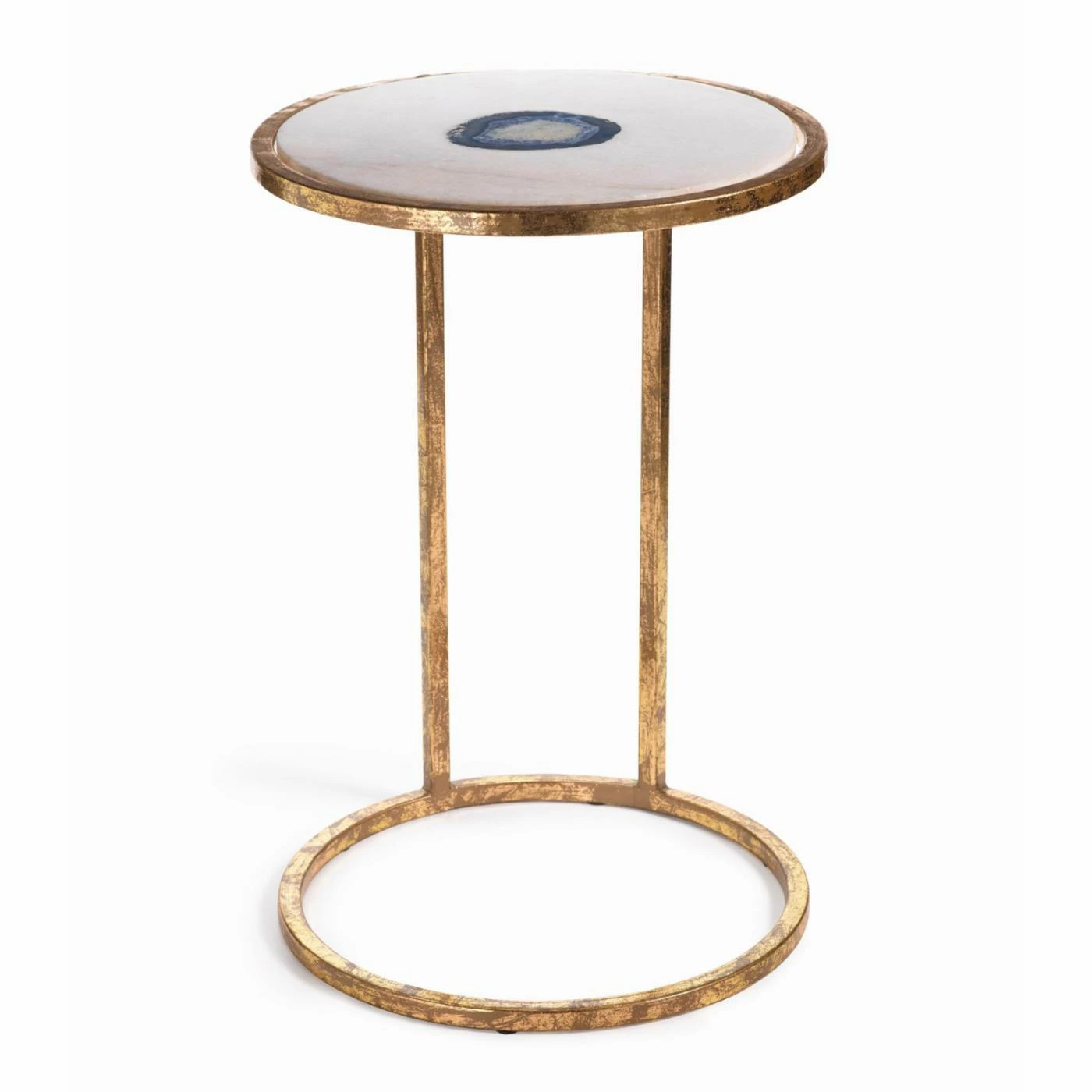 The Caspian Agate and Marble Inlay Accent Table features an artistic blend of genuine marble and agate. It can be placed along side your favorite seating to provide extra surface space for drinks, books, or essentials. The durable iron base boasts a shimmering gold finish which completes the contemporary look.