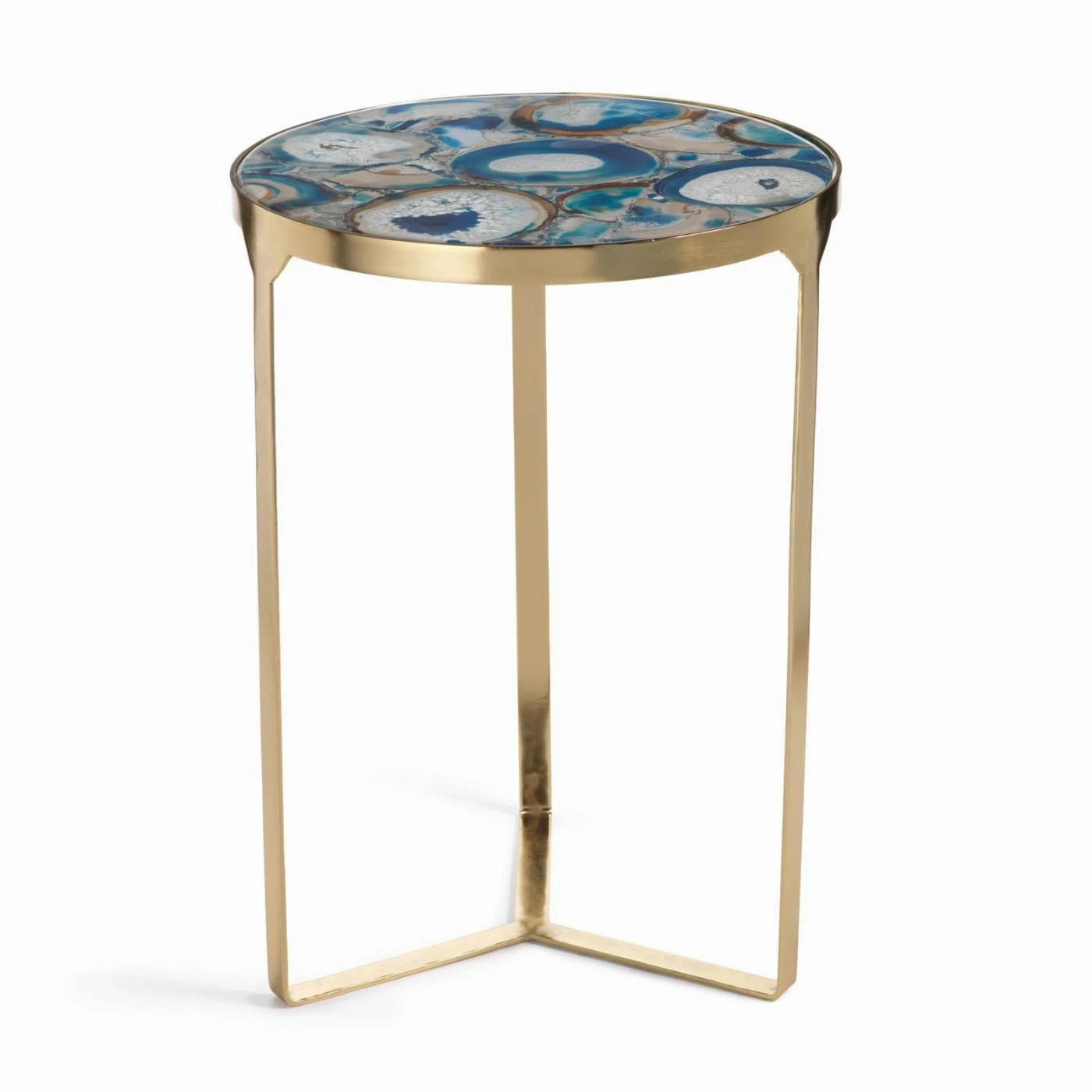 Add a distinctive finishing touch to your dΓ©cor with the La Sardaigne Agate End Table. The genuine agate top adds color and pattern which are unique to every table. The sturdy iron base features a metallic gold finish which adds shimmer and glamour that makes this table a must have.