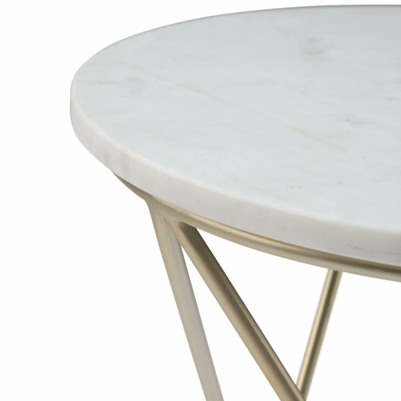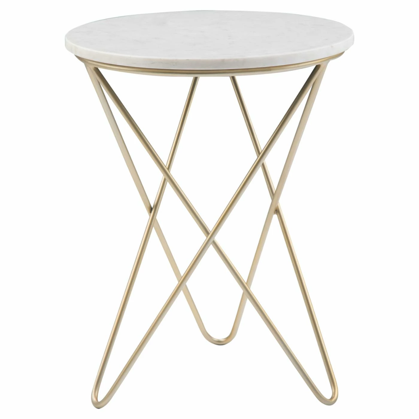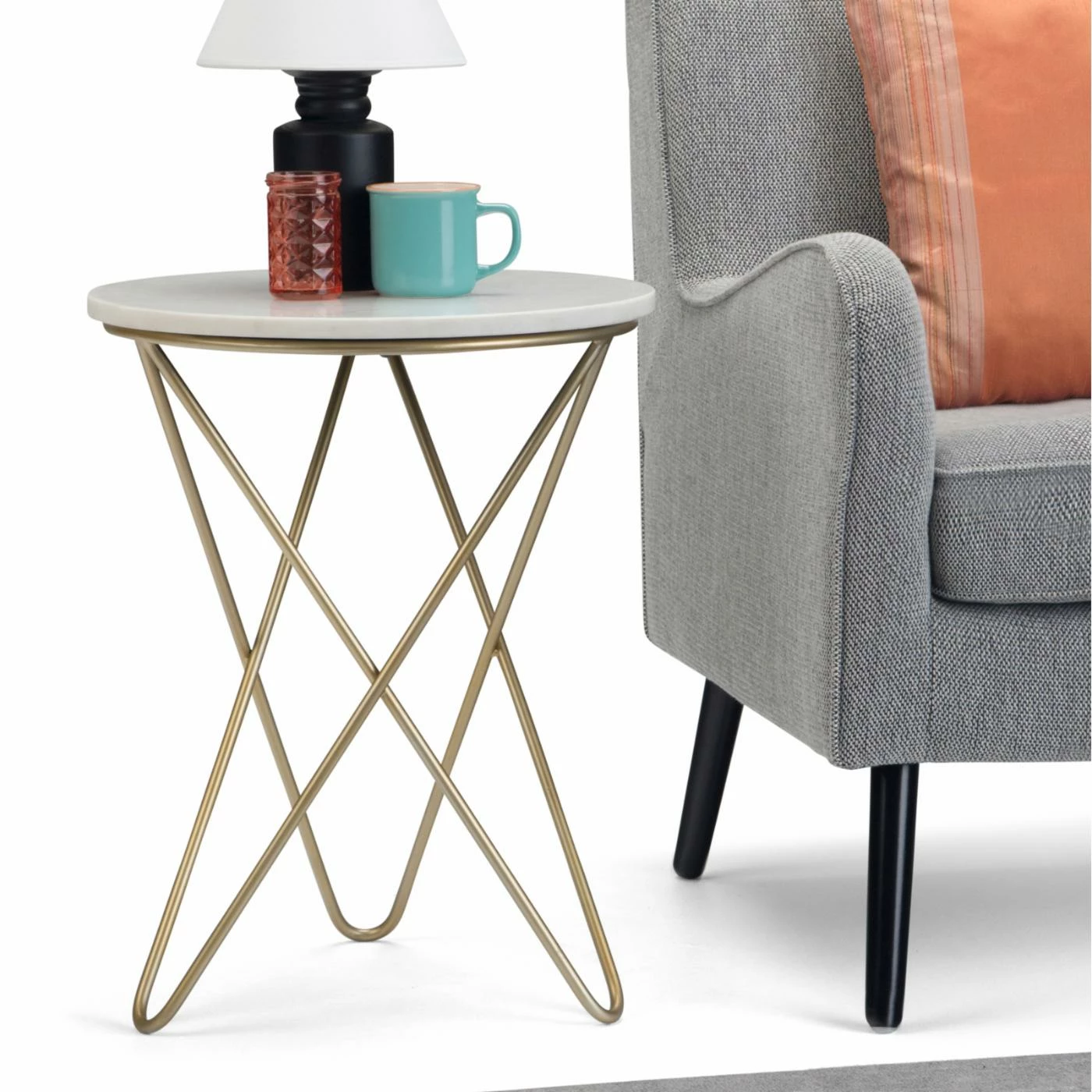 Easily add modern style and a touch of glam to your space with the Brooklyn + Max Caldwell Accent Table. Boasting a white marble top and hairpin legs that are finished in gold, this end table complements most homes handsomely. Hand-crafted and built to last, the marble top is reinforced with a wood substrate for strength and durability.