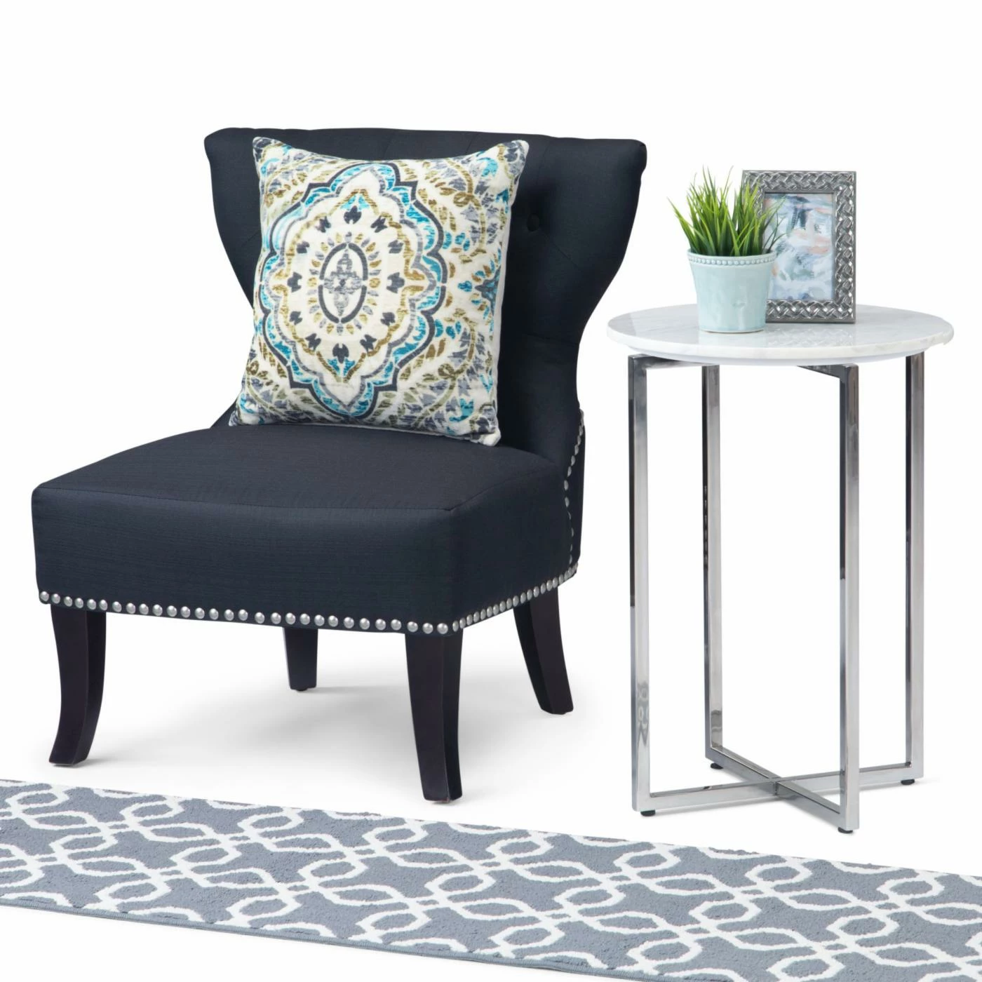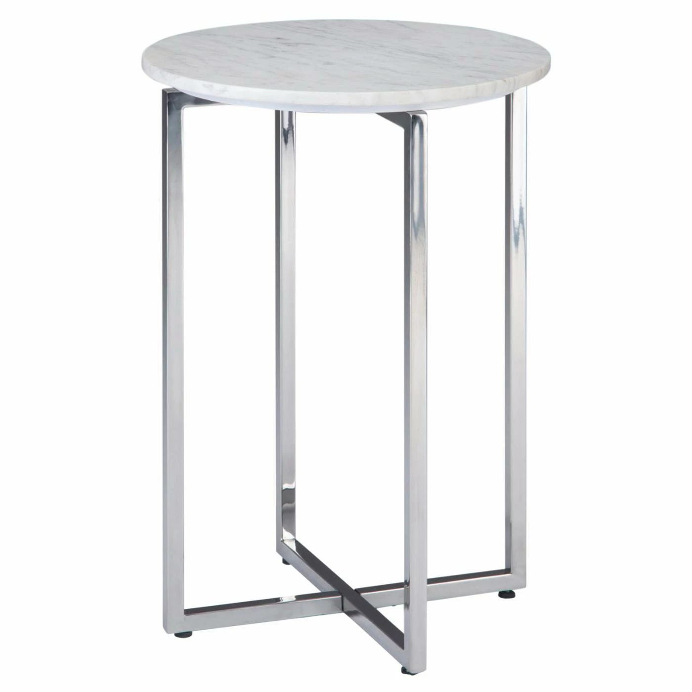 Use the Brooklyn & Max Geffin Contemporary 18 in. Marble Top Accent Side Table just about anywhere. This sleek piece features a chrome metal frame and X-shaped base. The round marble top gives it a glamorous edge. Use in your bedroom, living room, entryway, and more.