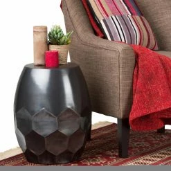 Your living space will shine with the addition of the Brooklyn + Max Korry Metal Accent Drum Side Table. This modern side table has a honey comb design on the bottom half and a sleek and smooth finish on the top. The antique copper finish gives this piece an elegant touch.