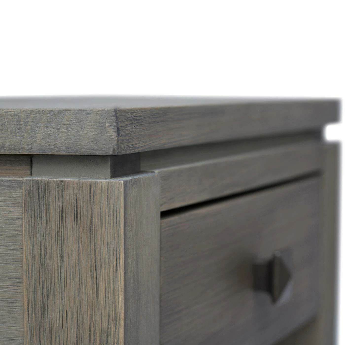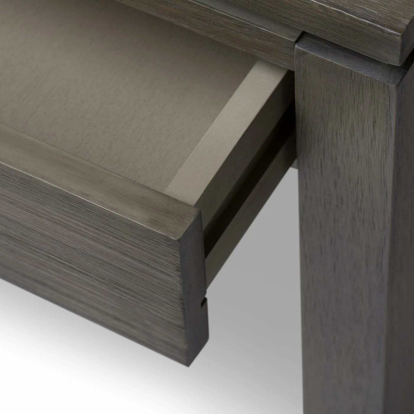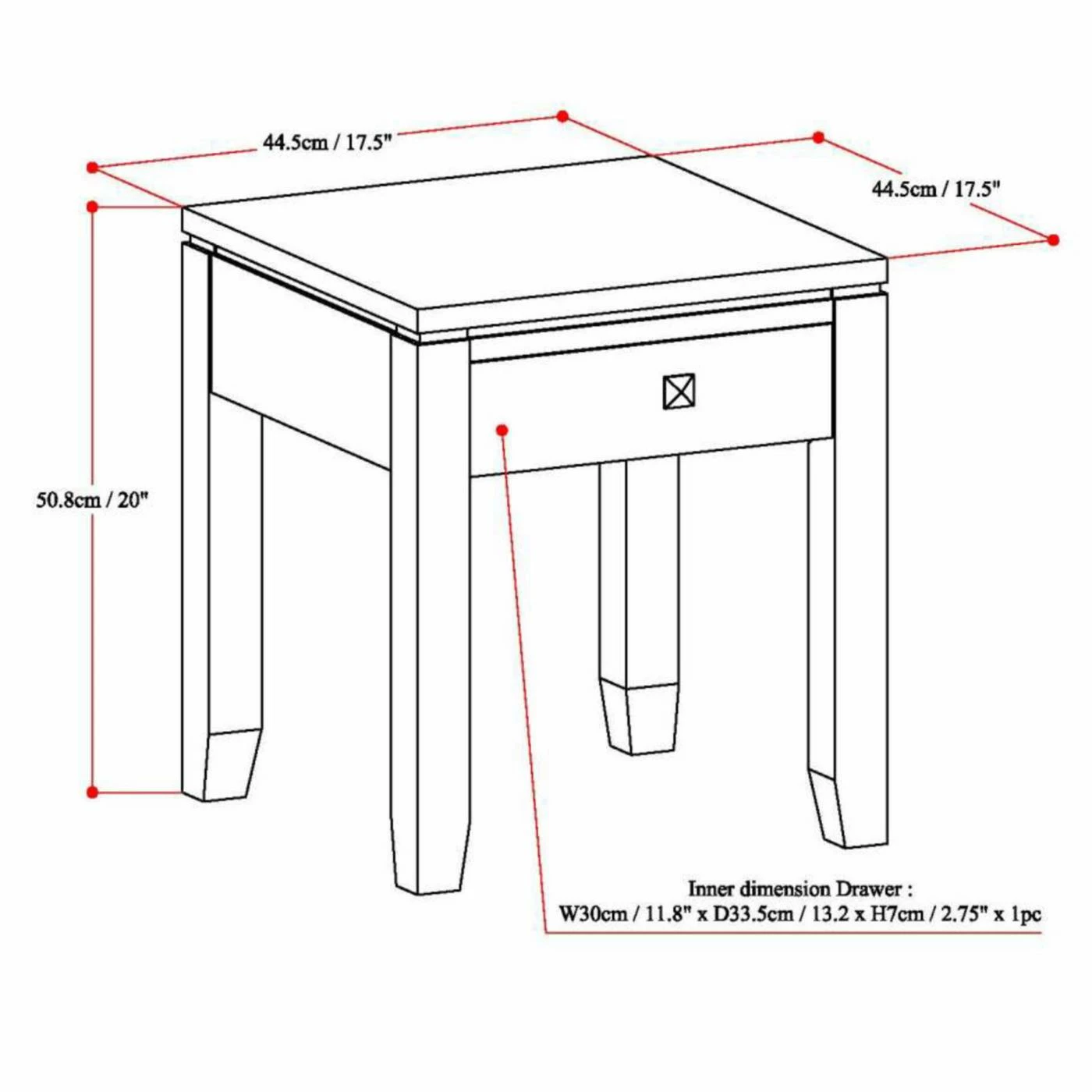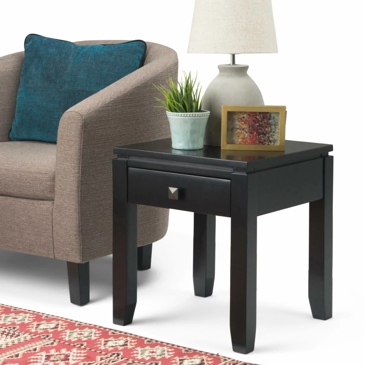 If you are looking for a traditional piece with a modern flair, the Brooklyn + Max City Square Pine Wood End Table is the end table for you. This end table has a traditional shape with a floating top and a square peaked knob. The drawer is perfect for remotes and magazines you have laying around.