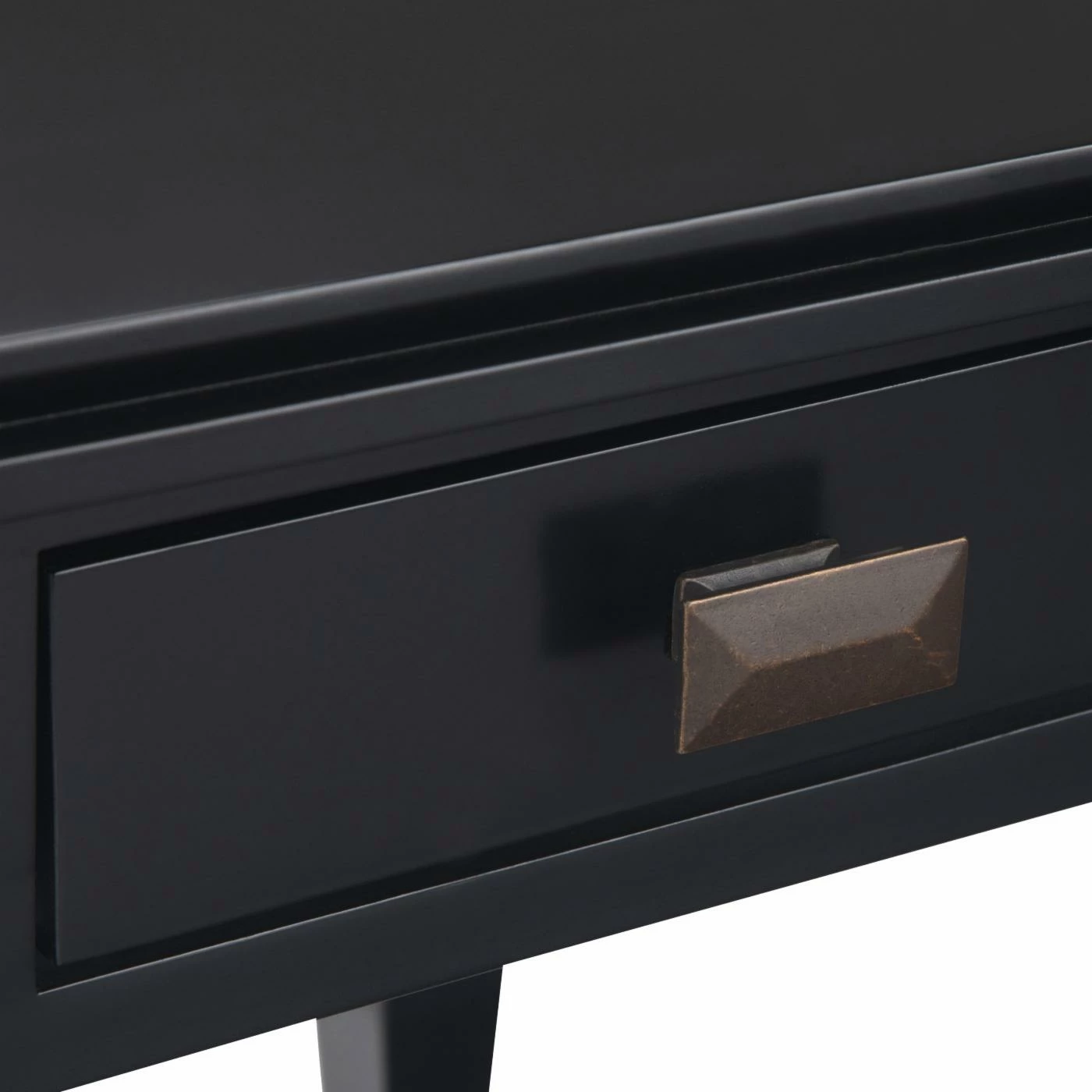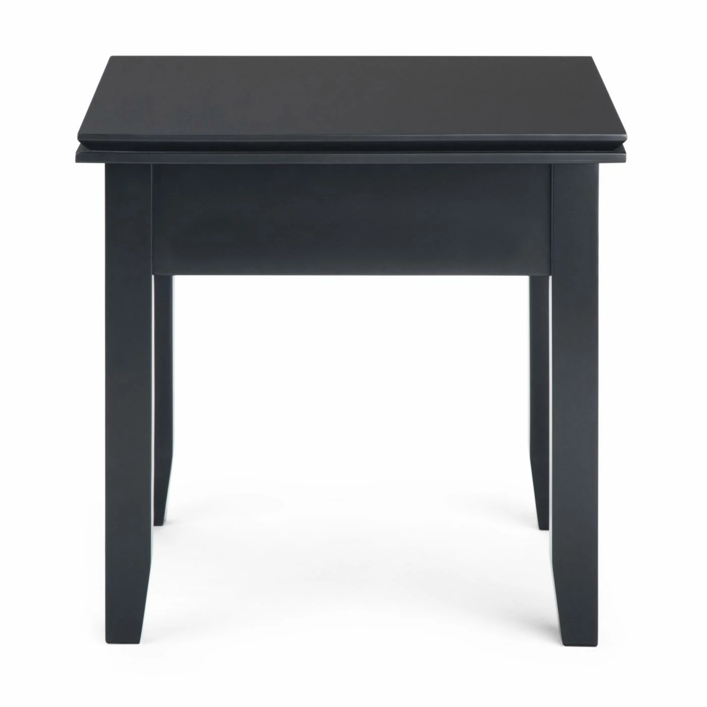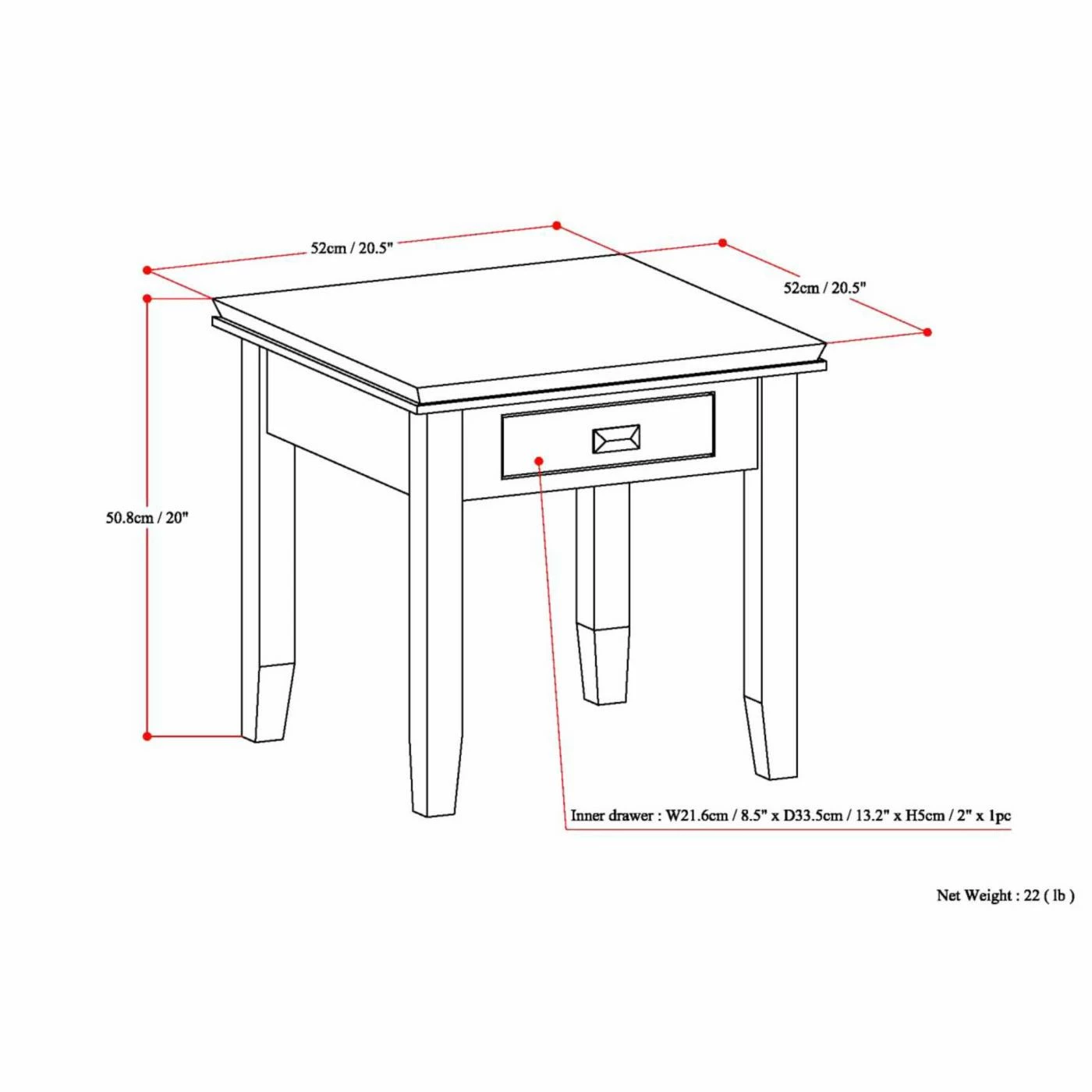 Bring a touch of simplicity to your living space with the Brooklyn + Max Holden Square Pine Wood End Table. This piece has a sleek and simple design. The single drawer has metal drawer glides and a classic knob. With slightly tapered legs, this piece draws in the eye of any guest.