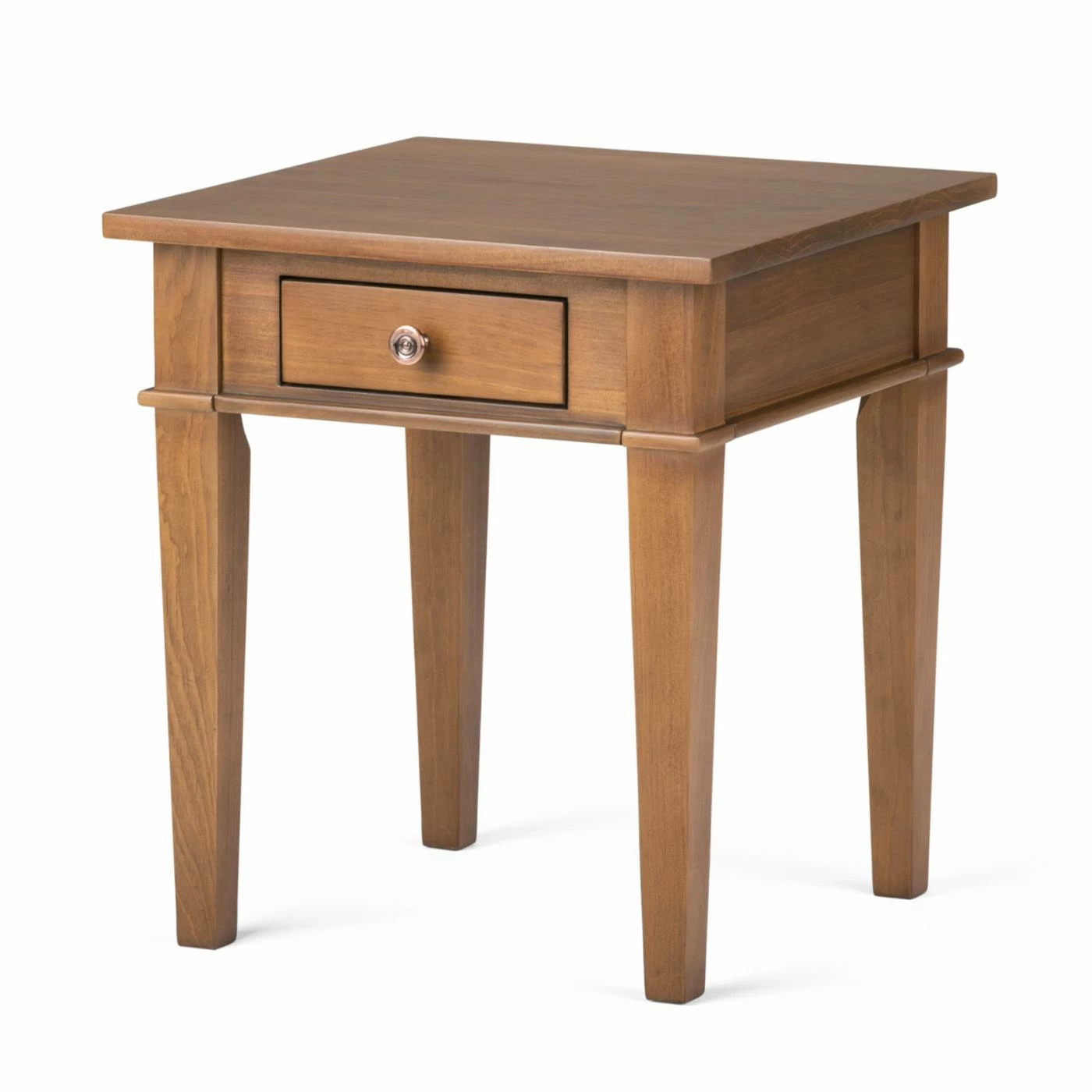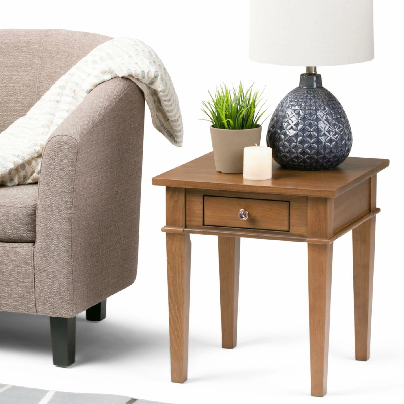 Complete your living room with the Brooklyn + Max Richland Square Pine Wood End Table. This simple end table looks great at the end of a couch or by the bed. With a single drawer, this table is compact with extra storage.