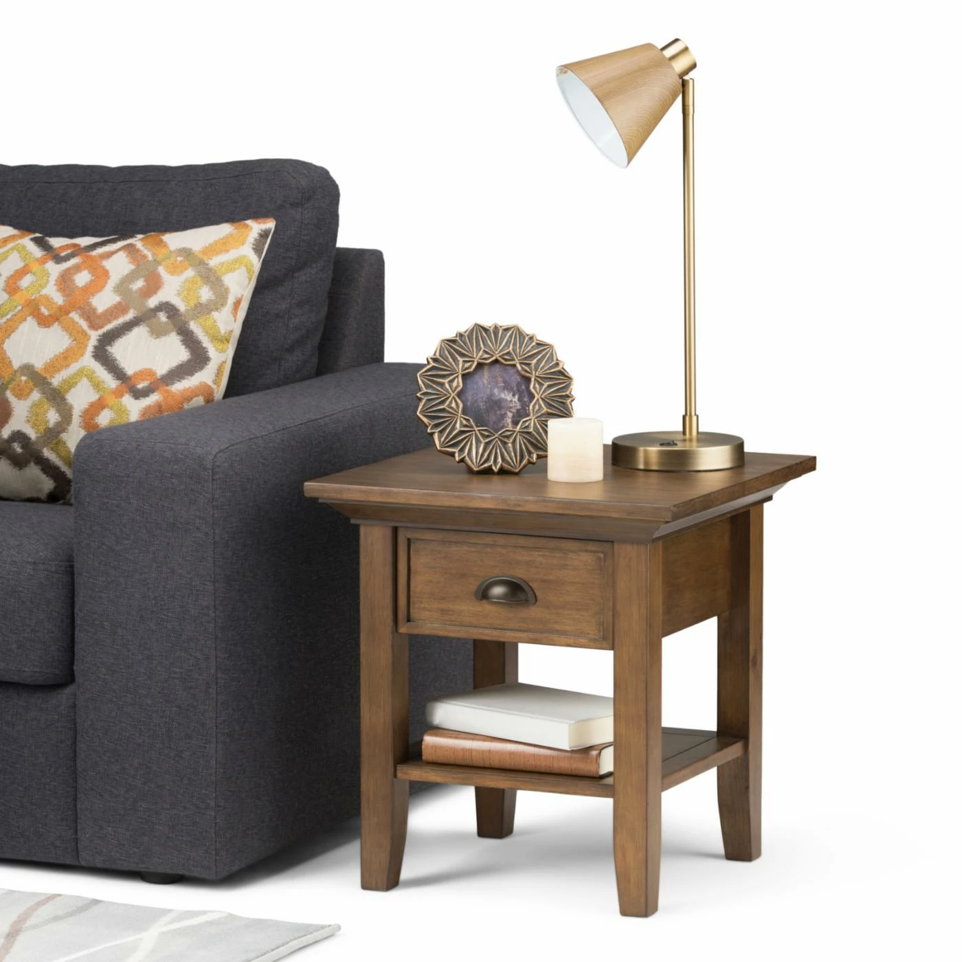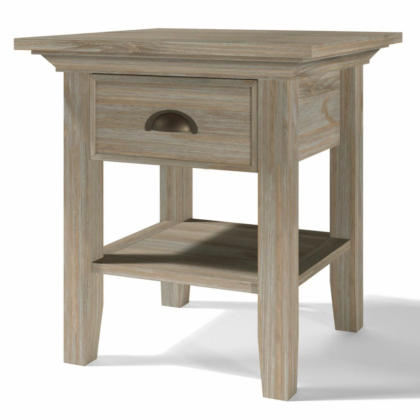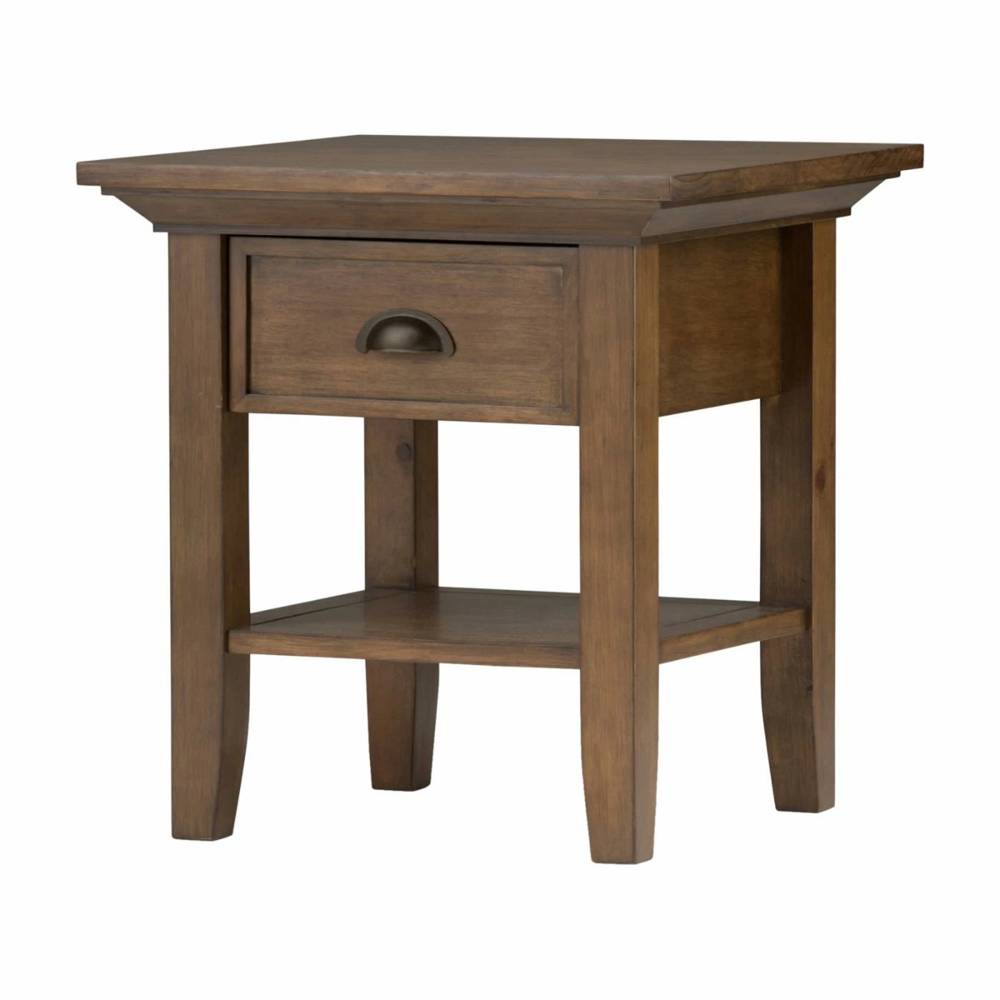Give your living space a traditional touch with the Brooklyn + Max Stanwick Rustic Square Pine Wood End Table. This end table has a molded crown edge table top and slightly tapered legs. With a lower shelf and a small drawer, this piece has the perfect amount of storage for the bedside or next to the couch. Select from the available finish options to suit your needs.