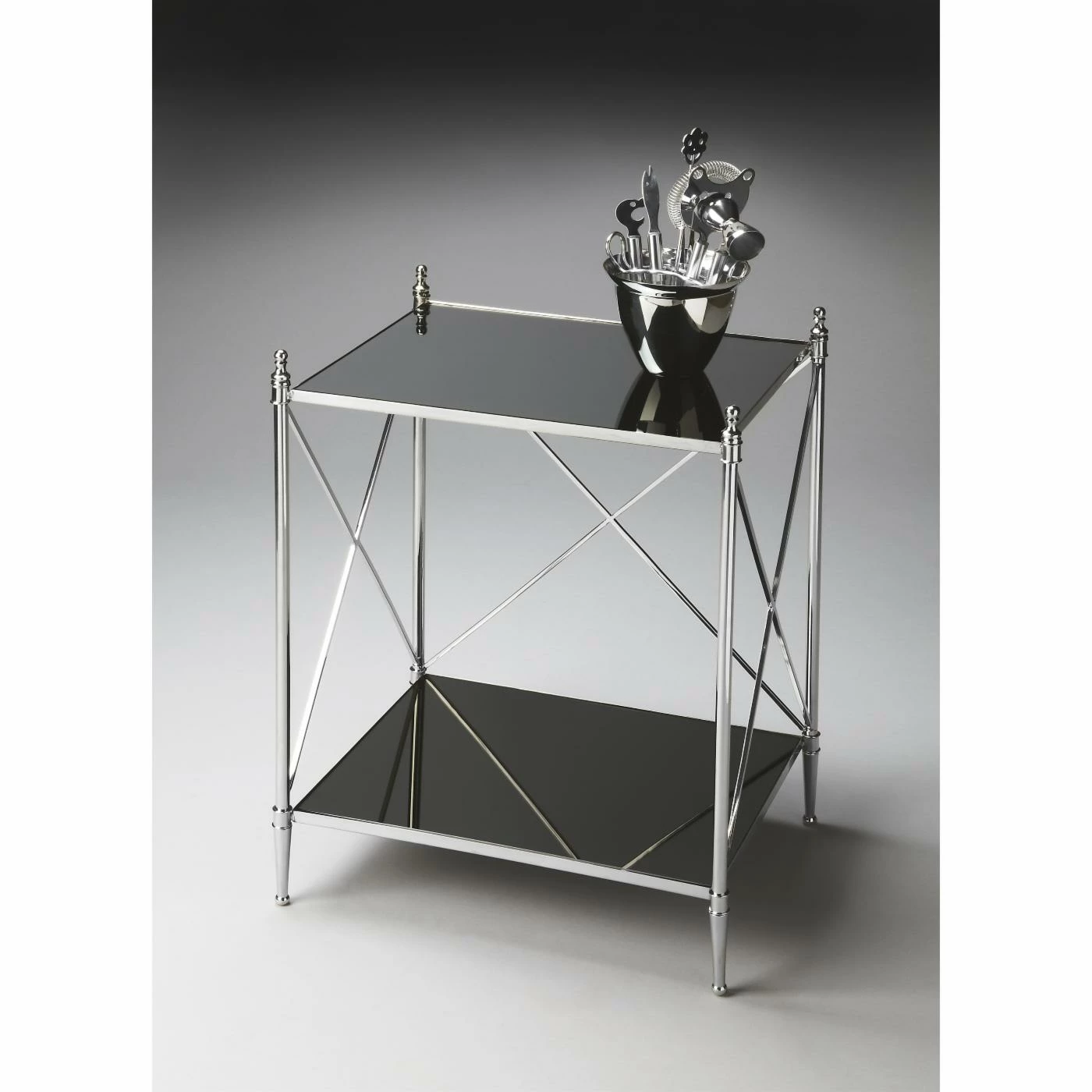 Let a bit of cool elegance take hold in your living room with the Butler End Table – Nickel. This sleek end table is made from sturdy iron and aluminum with an alluring nickel finish. The pair of shelves round out the contemporary styling with their mirrored glass tops.