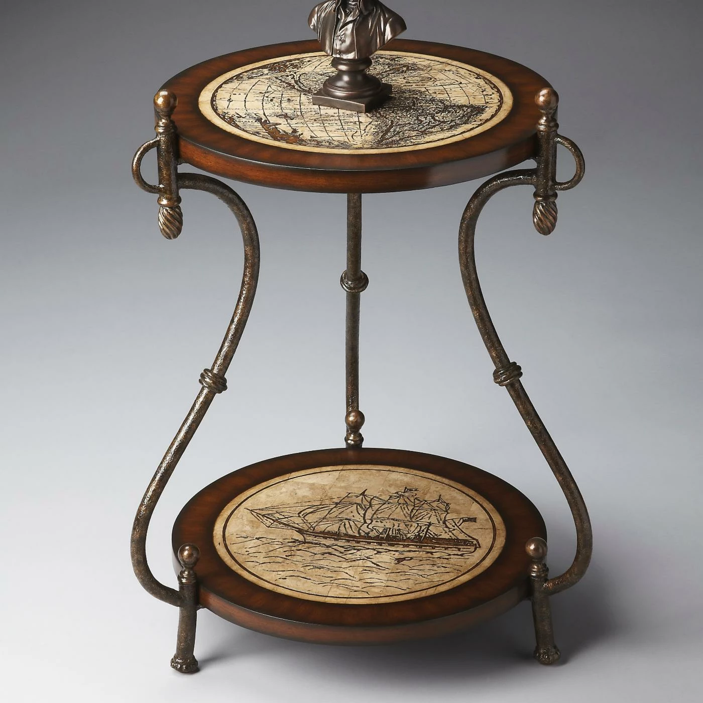 You are officially one click away from the Butler Accent Table 23 diam.- Heritage and style that you just can’t get from your local furniture mart. Cast metal legs form the sturdy base for the fossil-stone veneer and display shelf that will make this table a unique addition to any home.