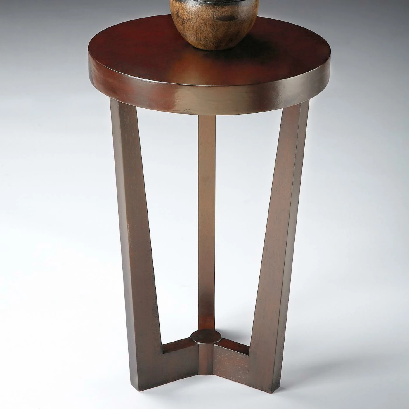 If they’d told us about the Butler Accent Table – Merlot in your high school geometry class, maybe we’d all have paid more attention. Solid hardwoods, choice engineered woods and select cherry veneers make up the triangles, circles and clear lines of this attractive, 15-lb table. The merlot finish brings it all together in a deep, rich color that will complement any home’s decor.