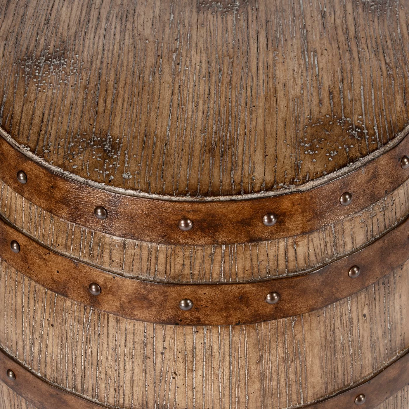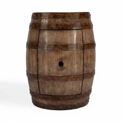 Roll out a barrel of fun with the Butler Barrel Table – Praline. This whimsical barrel-shaped table has great rustic appeal and is built to last of hardwood solids in a distressed cherry finish accented by antiqued brass bail drawer pulls. With storage in its hidden cabinet, this piece has a few tricks up its sleeve.