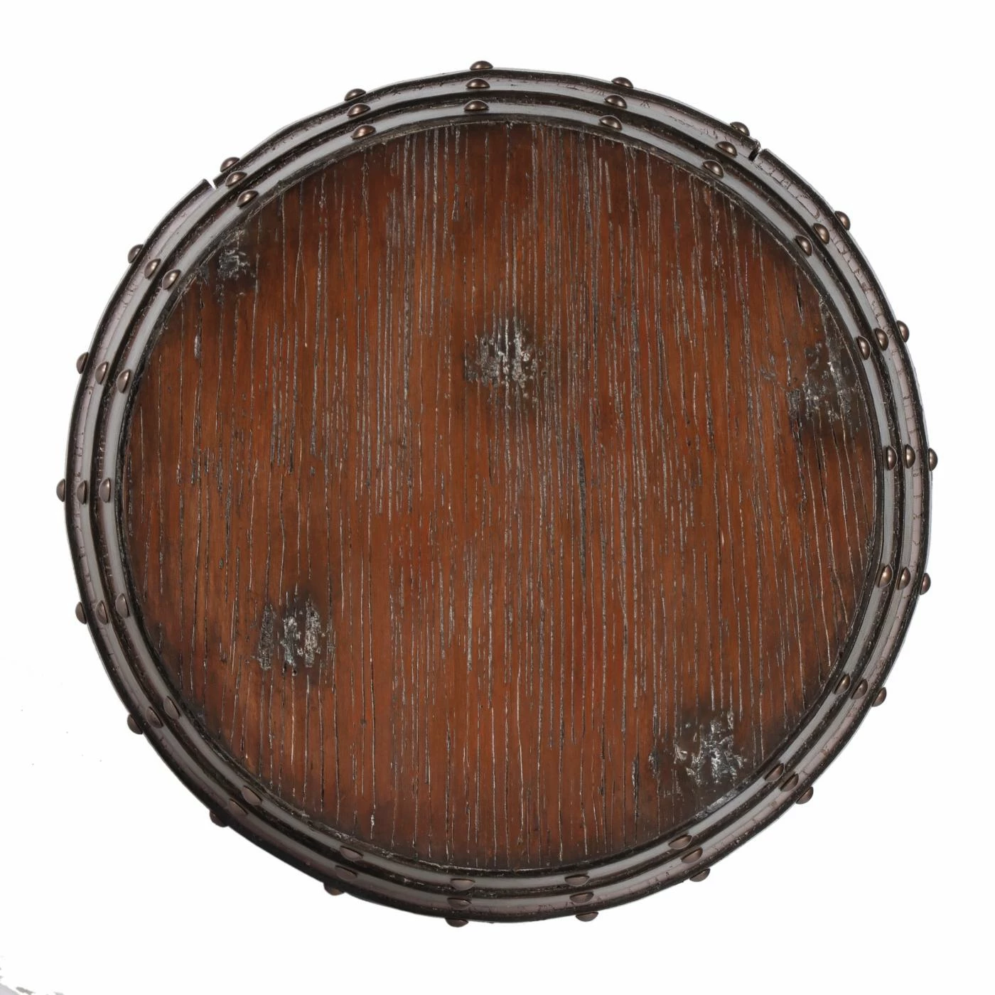 Liven up your room design with the Butler Calumet Barrel End Table, a rich, rustic accent that’s sure to inspire envy in your guests. This round end table is indistinguishable from a classic storage barrel, but built entirely anew and designed for a lifetime of use. Gemelina wood solids and medium-density fiberboard are used to construct the piece, finished in a deep, dark brown. Riveted iron bands belt the barrel down its frame.