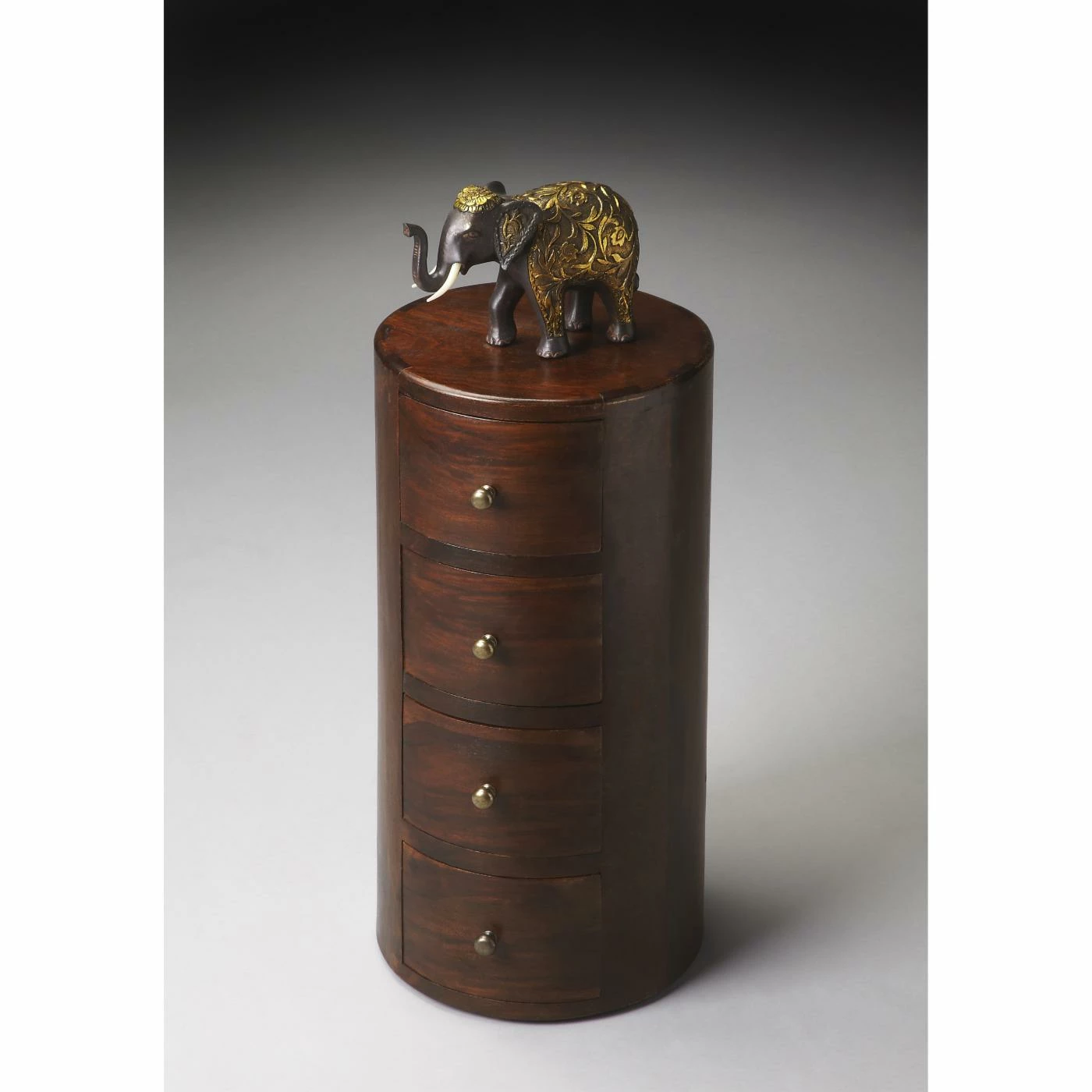The Butler Liam Wood End TableΒ shows that sometimes beauty is all about simplicity. The solid sheesham wood design features a lovely choice of finish. The drum-shaped design has four drawers for convenient storage, so you can keep things out of sight. Antique brass hardware finishes the look for a table that’s sure to be an instant favorite.