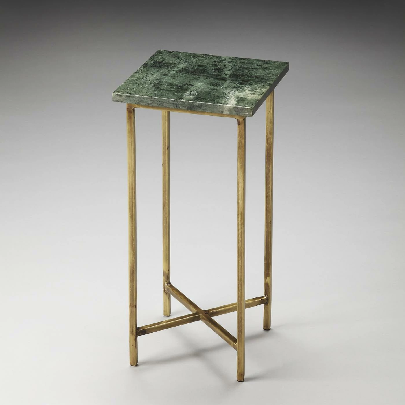 With a subtle and slender look, the Butler Loft Accent Table makes a splendid corner accent for your entryway or living room. The frame of this piece is made from sturdy, solid iron with a low X-shaped bracer. A brilliant brass finish tops the metal of the table. The square tabletop is made from a solid piece of green marble, an appropriate size for pictures, vases, and more.