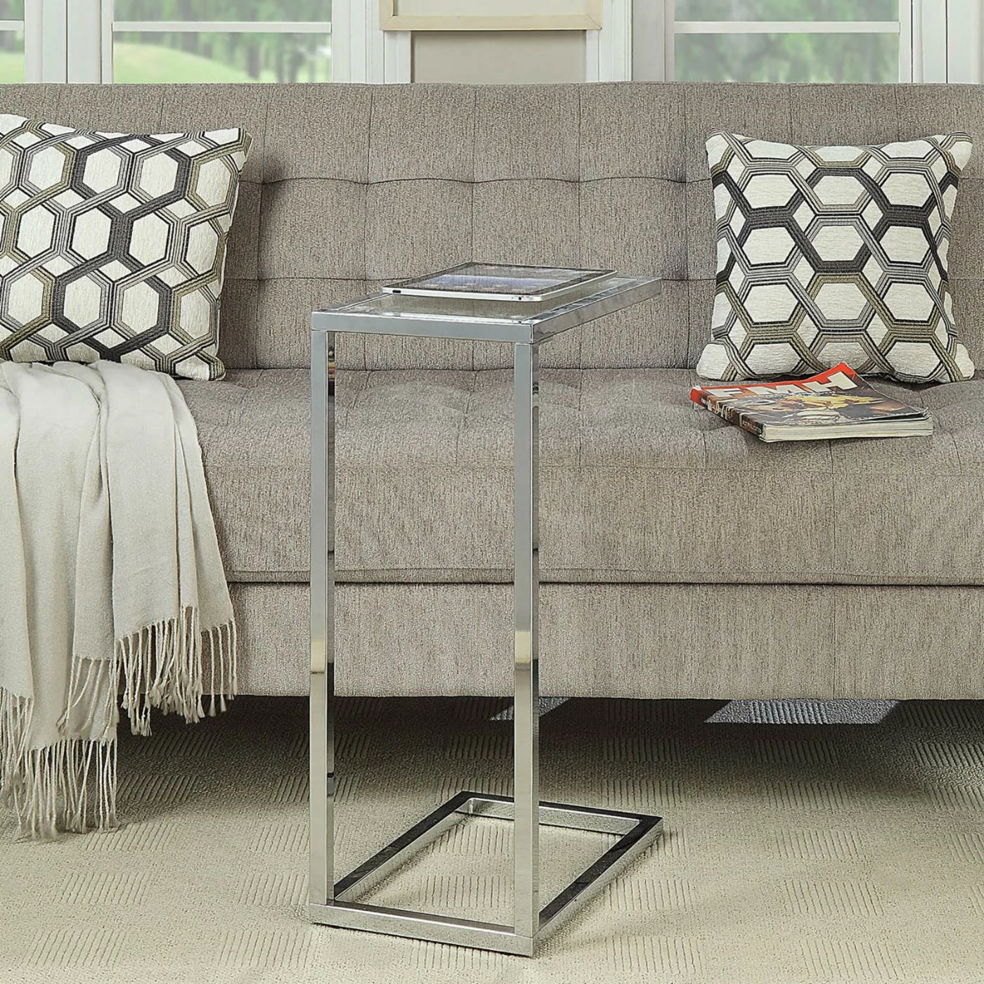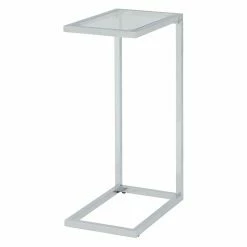 The petite, tray-style design of the Carolina Chair & Table Co. Anson Glass Topped Side Accent Table brings endless versatility to your home’s dΓ©cor. This side table features an open-sided, modern angular base crafted from metal, and slides easily under your couch for convenient accessibility. The clear tempered glass top keeps the look light and elegant while providing useable surface space right where you need it.