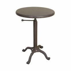 The industrial style of the Carolina Minna Adjustable Vintage Table adds a dramatic touch to any setting with its rhythmic riveted top and claw-footed base. This accent table is crafted entirely from solid metal in a rustic brown finish and includes a unique lever handle that adjusts the height from 22-32 inches so that you can achieve the best possible presentation for your photos, potted plants, family heirlooms, and more.