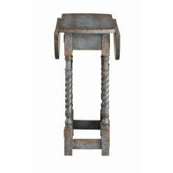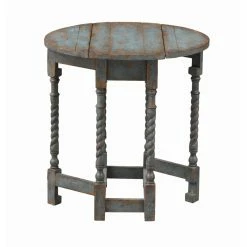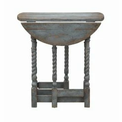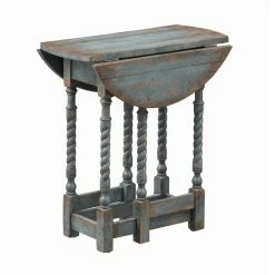 We love this Drop Leaf Accent Table, and you will too! Perfect for any spot whether you want to open it up for a round surface, or let the leaves down to fit into that smaller area – you have the option! Finished in a beautiful Roxanne Aged Blue with a rub-through patina and six spiral twist gate legs that easily fold in and out, you will adore the look as much as the convenience this sweet Table will allow!