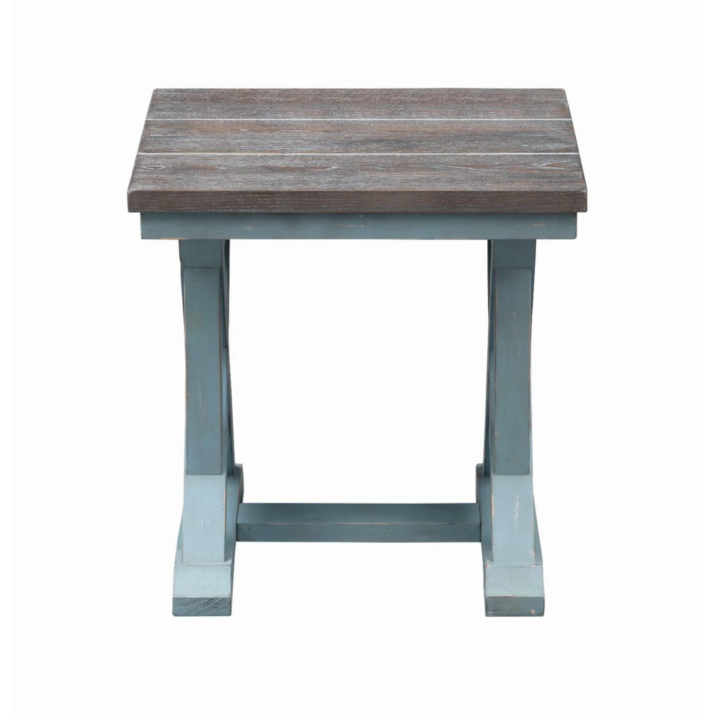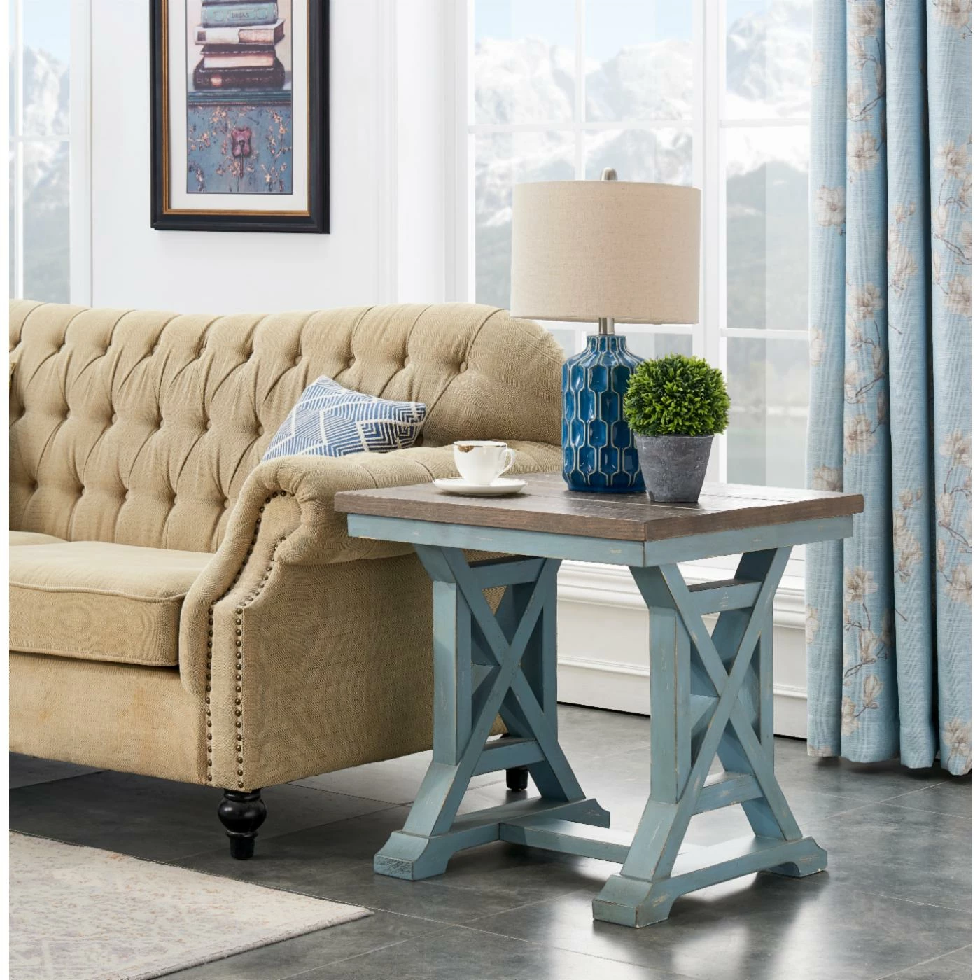 Your style is casual, no fuss, clean and classic. We understand, which is why we know you are going to love this End Table with the natural wood grain plank top, and a base finished in our soothing Bar Harbor Blue. The trestle styling of the base provides just the right amount of design elements to draw the eye, yet not overwhelm the senses. Perfect. Yes, simply perfect!