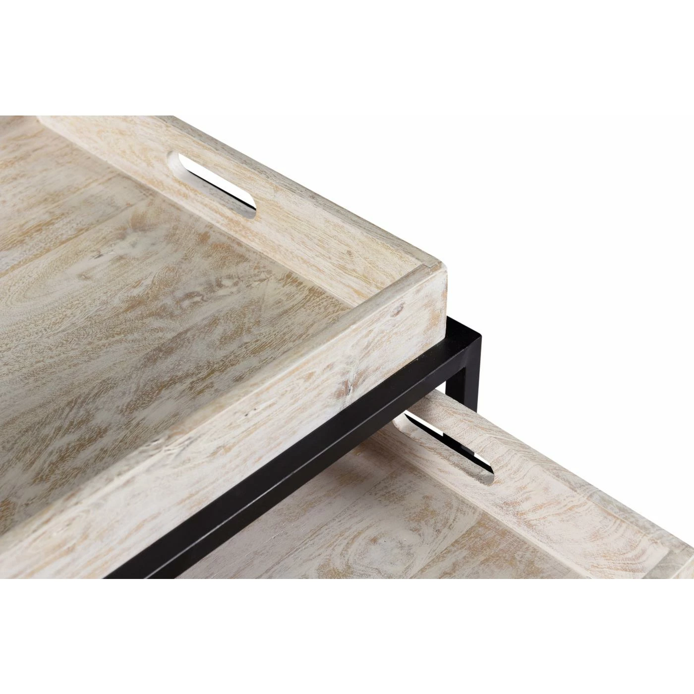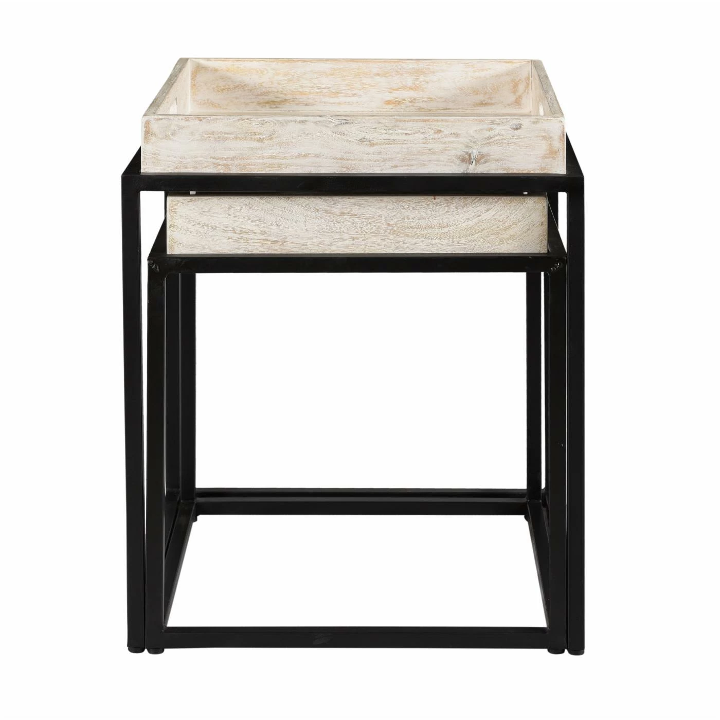 Trays and nesting tables – two of our favorite things! So we have combined them to bing the best of both to you! Wooden trays finished in our Merrimack Whitewash sit snugly on top of linear black powder coated metal frames. Perfect for holding drinks and snacks when company drops by, and when not in use, they still look great with the smaller of the two tucked perfectly under the larger one!