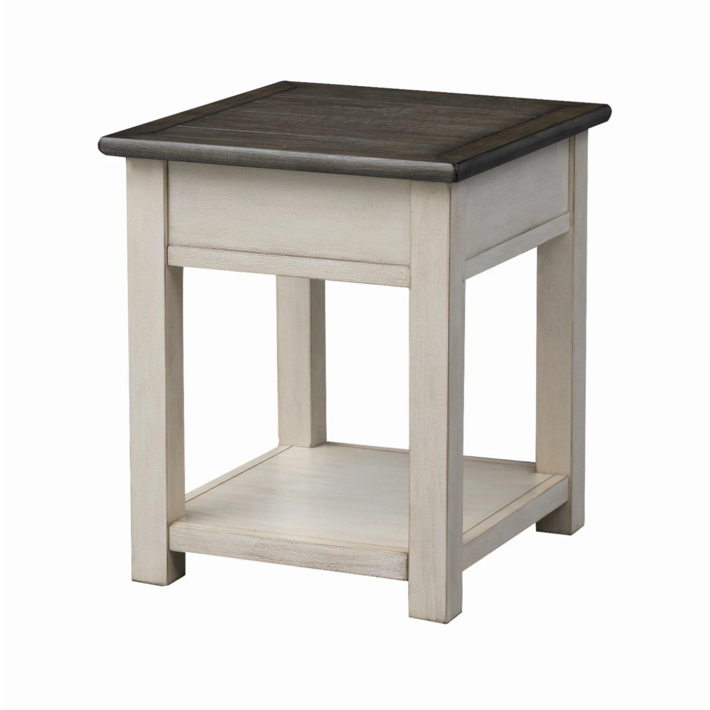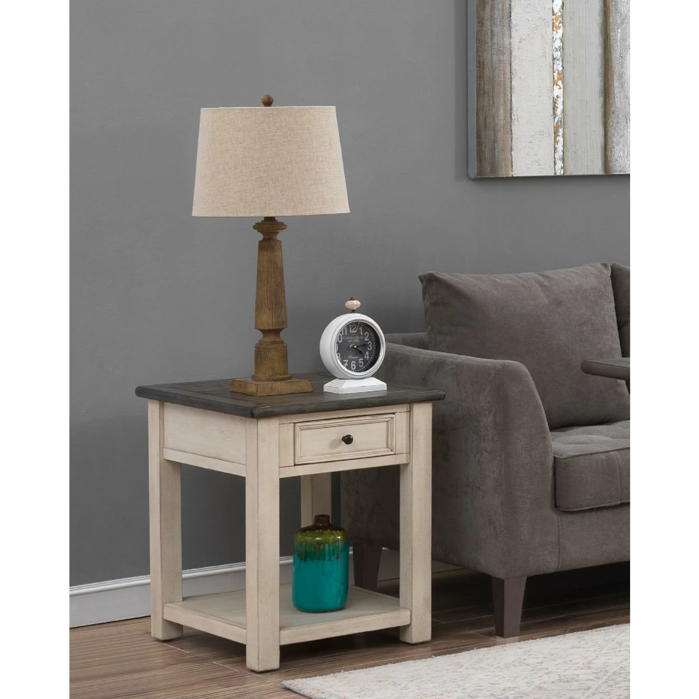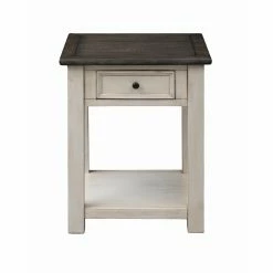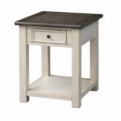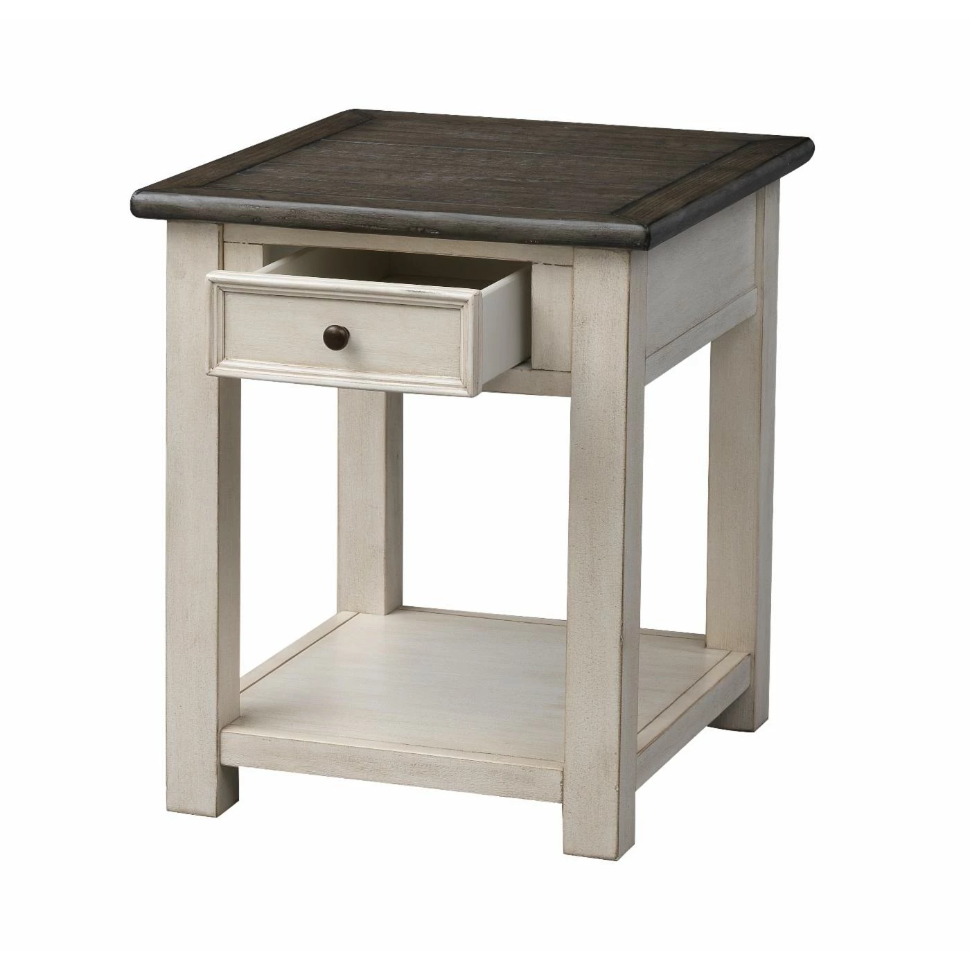 The blending of light and dark gives you the best of both in this End Table finished in our St. Claire Cream. Perfectly sized to fit on either side of your sofa, or next to your reading chair, this End Table offers a top drawer for you remotes as well as a lower shelf to keep a few good books within easy reach. Add a lamp and a steaming cup of cocoa to the top and enjoy.