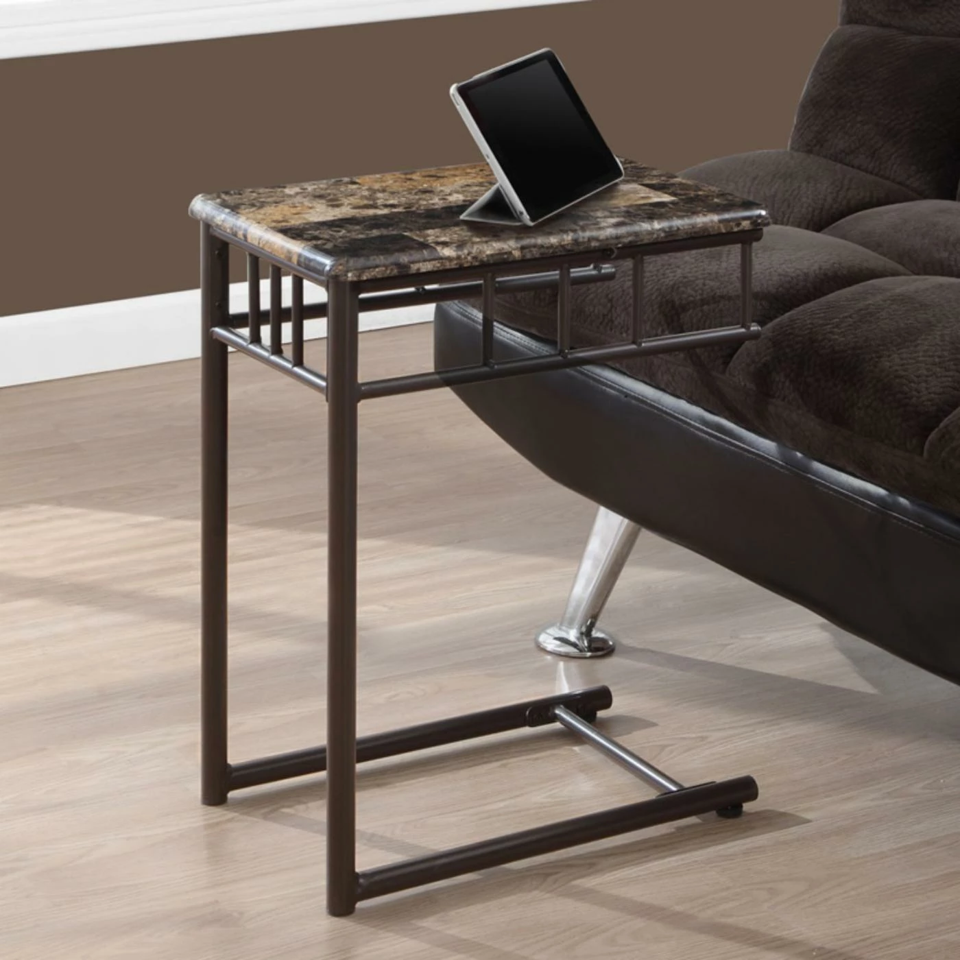 Convenience doesn’t mean you have to sacrifice style, the Monarch Square Metal Snack Table – Cappuccino Marble / Bronze is a handy little table that snuggles up to your couch or favorite chair and looks good doing it. This snack table has a sturdy, bronzed metal frame topped with a luxurious faux marble top to match.