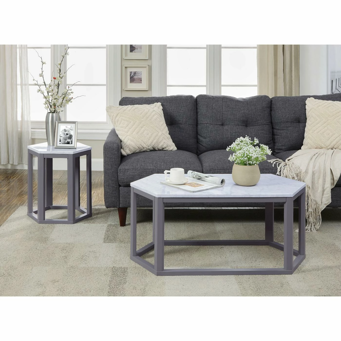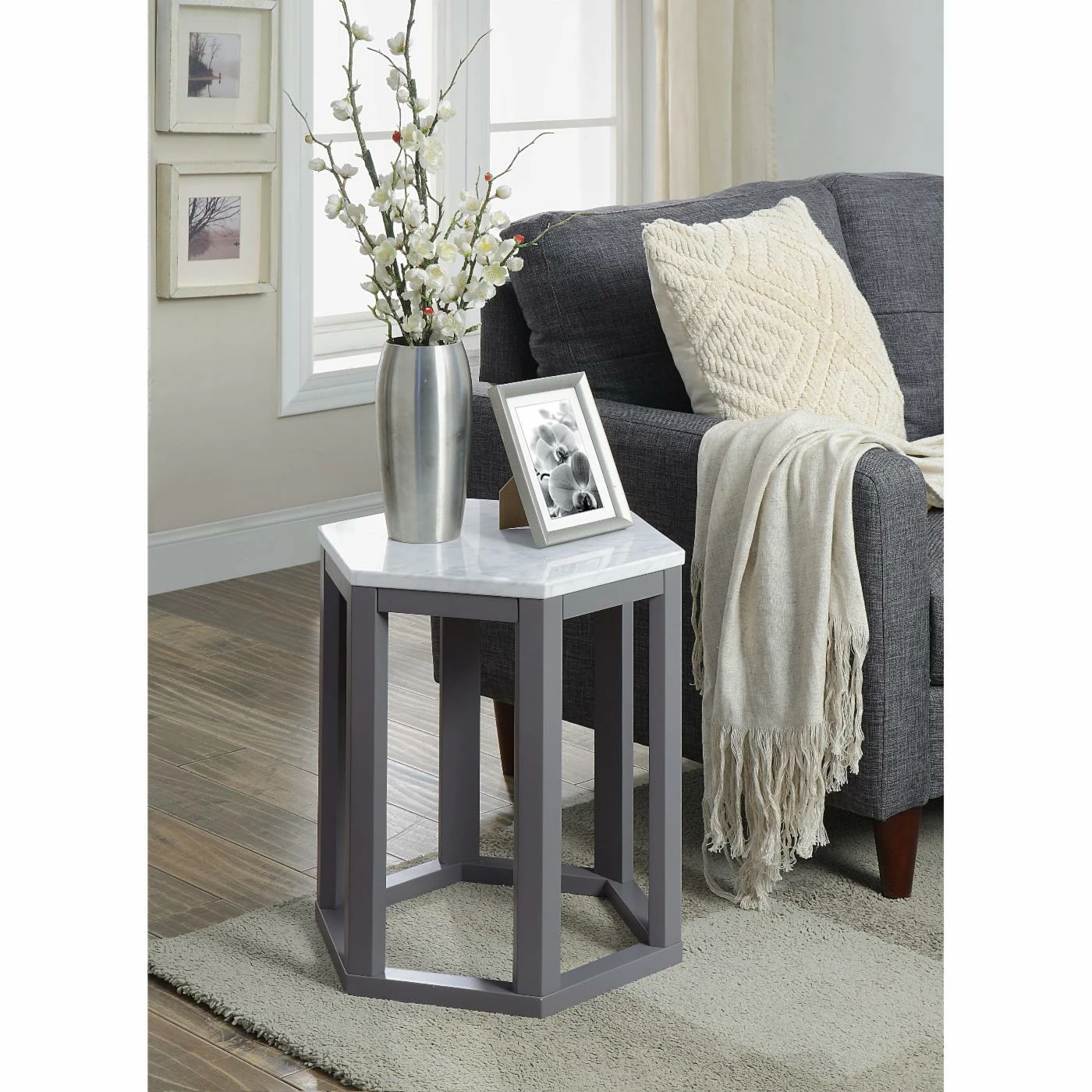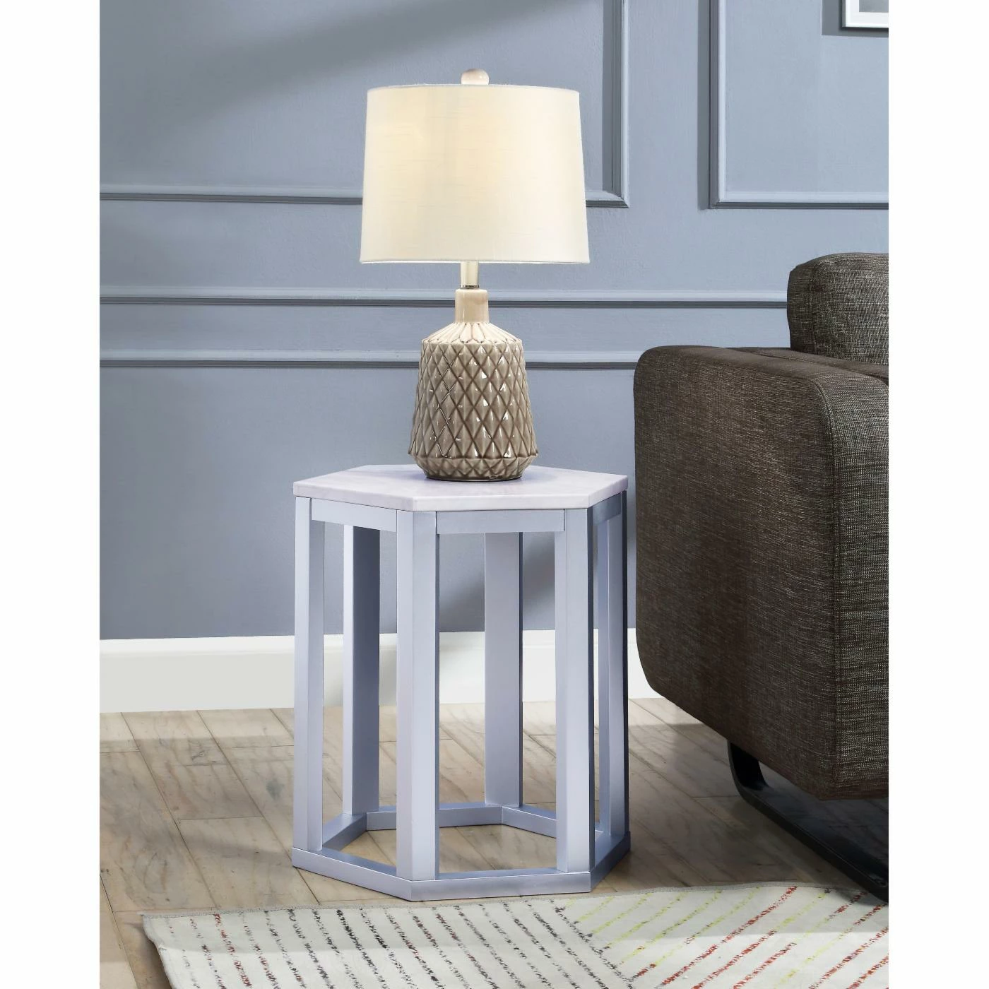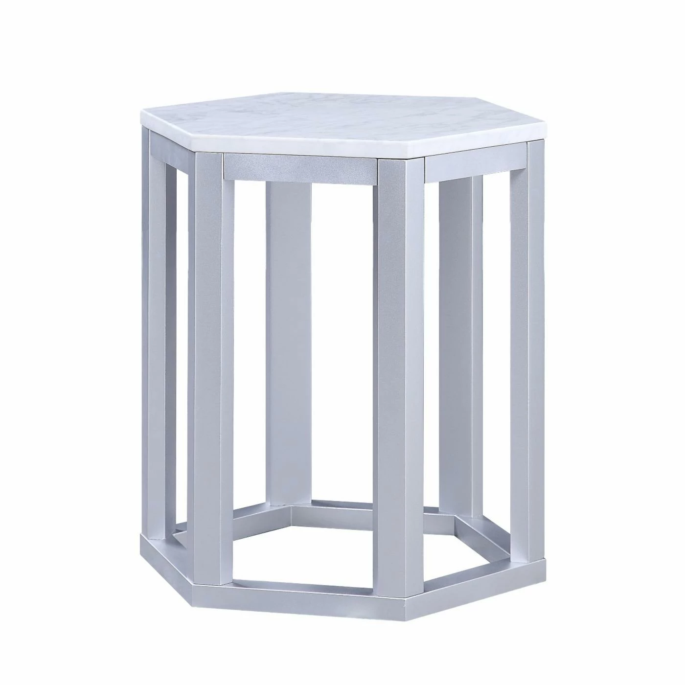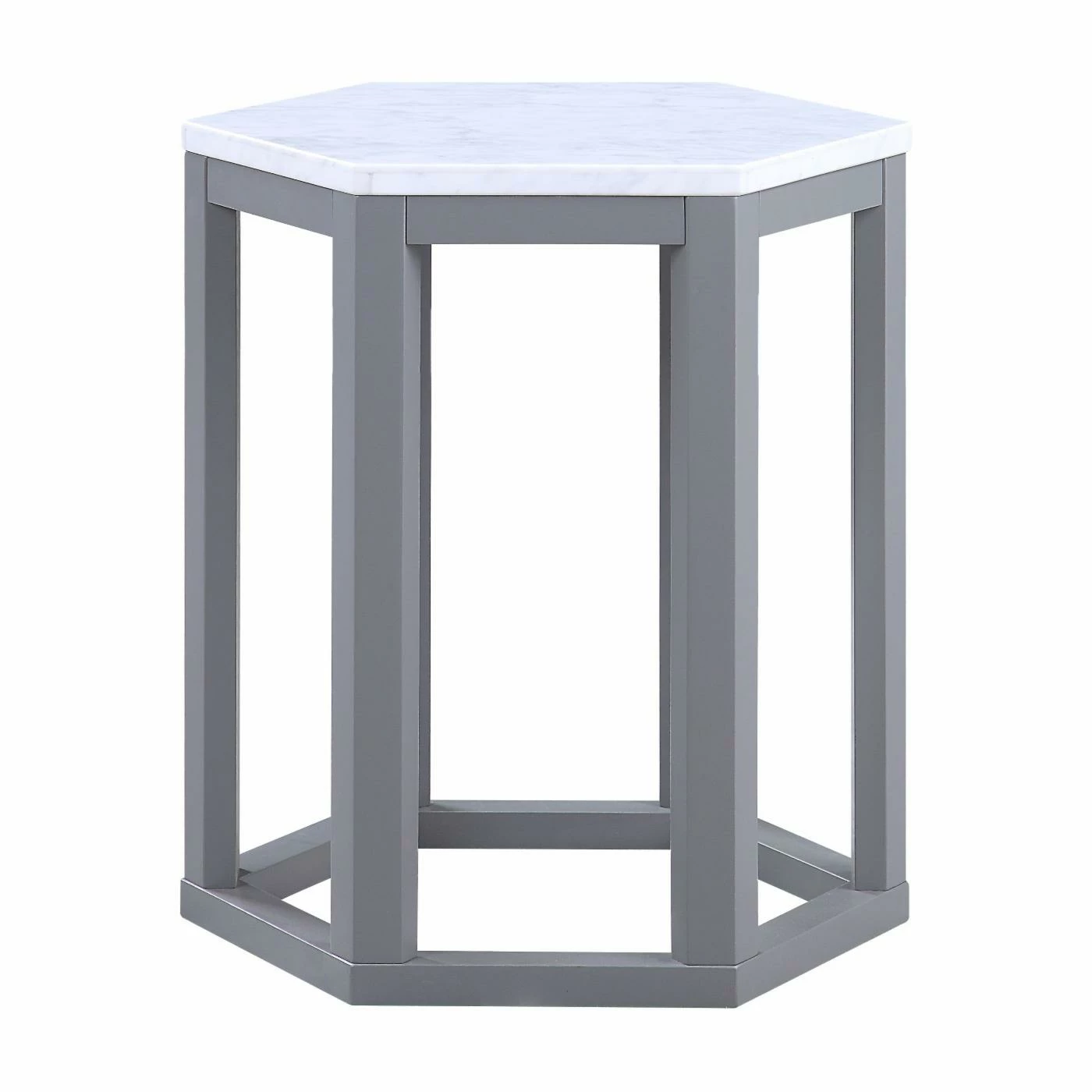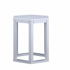Provide pedestal perches for your favorite decorative pieces or keep your guests cozy with the Acme Furniture Acme Reon White Marble End Table – Set of 2. Two matching tables are included in this set. Each piece boasts a hexagonal frame that’s built from engineered wood and pine hardwood solids. Thick genuine marble forms the tops, creating a fetching contrast when paired with the wood frames. Select among the available colors for the ideal complement to your home.