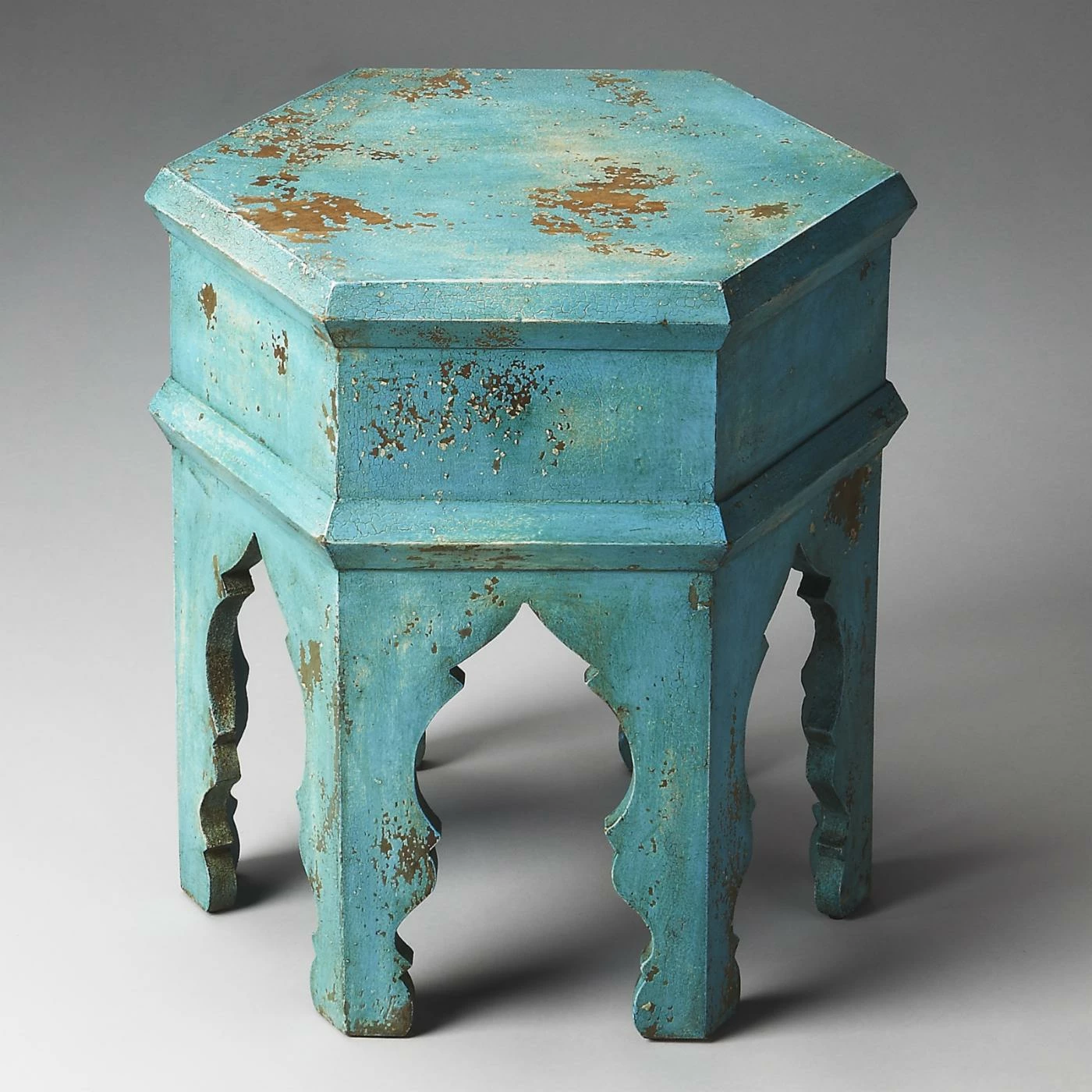 Featuring top quality craftsmanship and eye-catching details, this Butler Specialty Artifacts Tangiers Bunching Table is ideal in a bedroom or living room. Moroccan-inspired in its elements, it boasts mango wood solids construction for lasting use. Finished in a heavily distressed blue, it’s impressively versatile: it can be used as an extra side table or even as a foot rest.