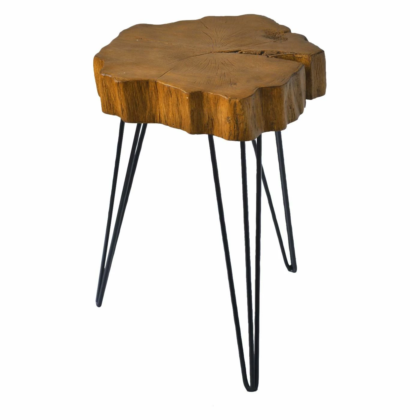 22 x 11 Contemporary polystone and metal accent table, features a gray-finished irregular shape of table made of polystone, textured finish on sides, 3 iron slanted legs