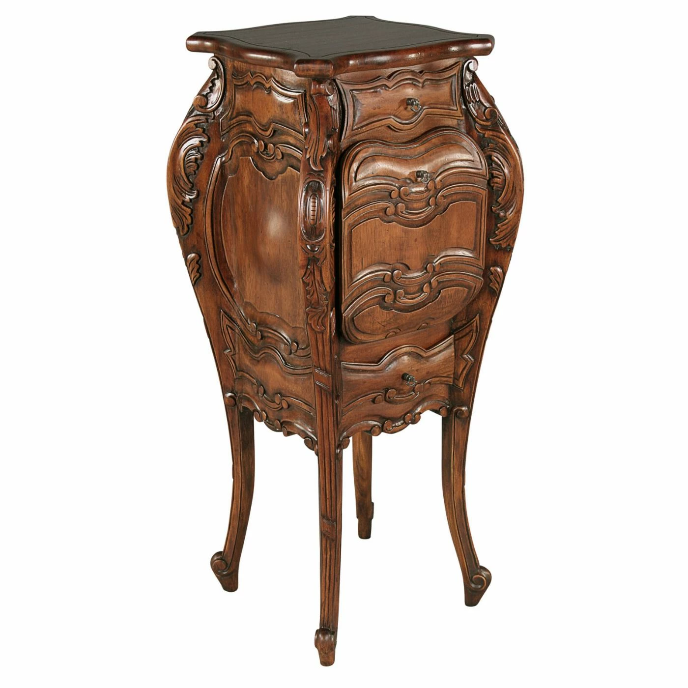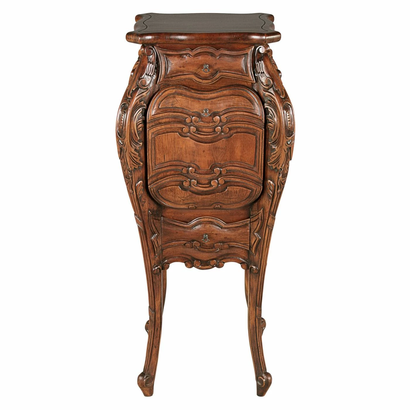 Pair your leather wingback chair or Old World-style settee with the Design Toscano San Giacomo Side Table to create a period-style setting that ties your room together. This side table is modeled after antique English humidors with cabriole legs and baroque carved accents. For storage, two drawers and a single-door cabinet, with an interior shelf, offer ample storage. The piece is constructed from sturdy hardwood with a handsome mahogany brown finish.