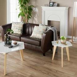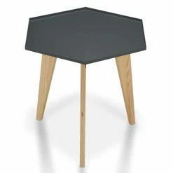Reminiscent of mid-century modern furnishings, the HN Home SoleriΒ Mid-Century Modern Hexagon End Table will add retro appeal to your seating area. The angled wood legs reflect the warm quality of furniture produced during the 1950s and 60s. A metal tray top adds the finishing touch and keeps whatever you place on the table secure.