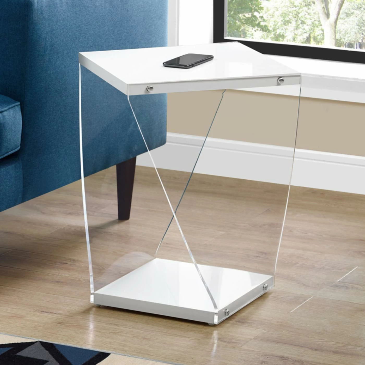 Twist some modern elegance into your living room with the Monarch Specialties Twisted Rectangular End Table. This table has a slim, unobtrusive frame and a curvy design that gives off a spontaneous vibe. Add one next to your sofa for a cool place to set a cool drink.
