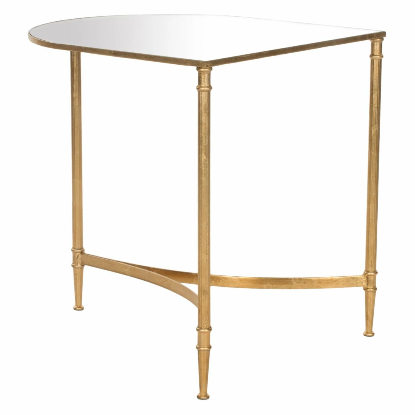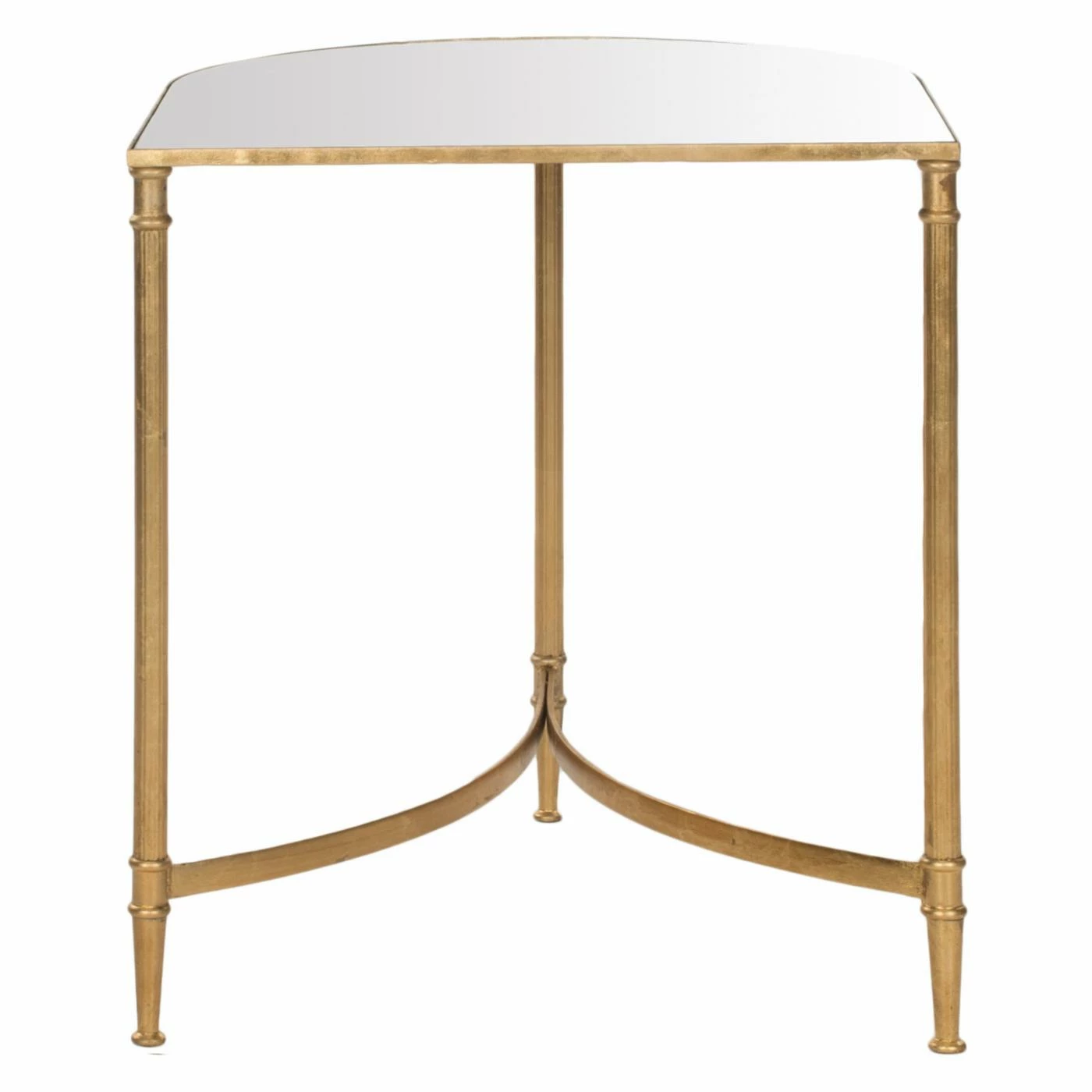 The unique shape and elegant style of the Safavieh Nevin Accent Table – Gold/Mirror Top make it a gorgeous accent in your living room. The sweeping curve of the metal base features a bright gold finish. A mirrored top provides the perfect contrast for a piece that’s so much more than just an accent table.