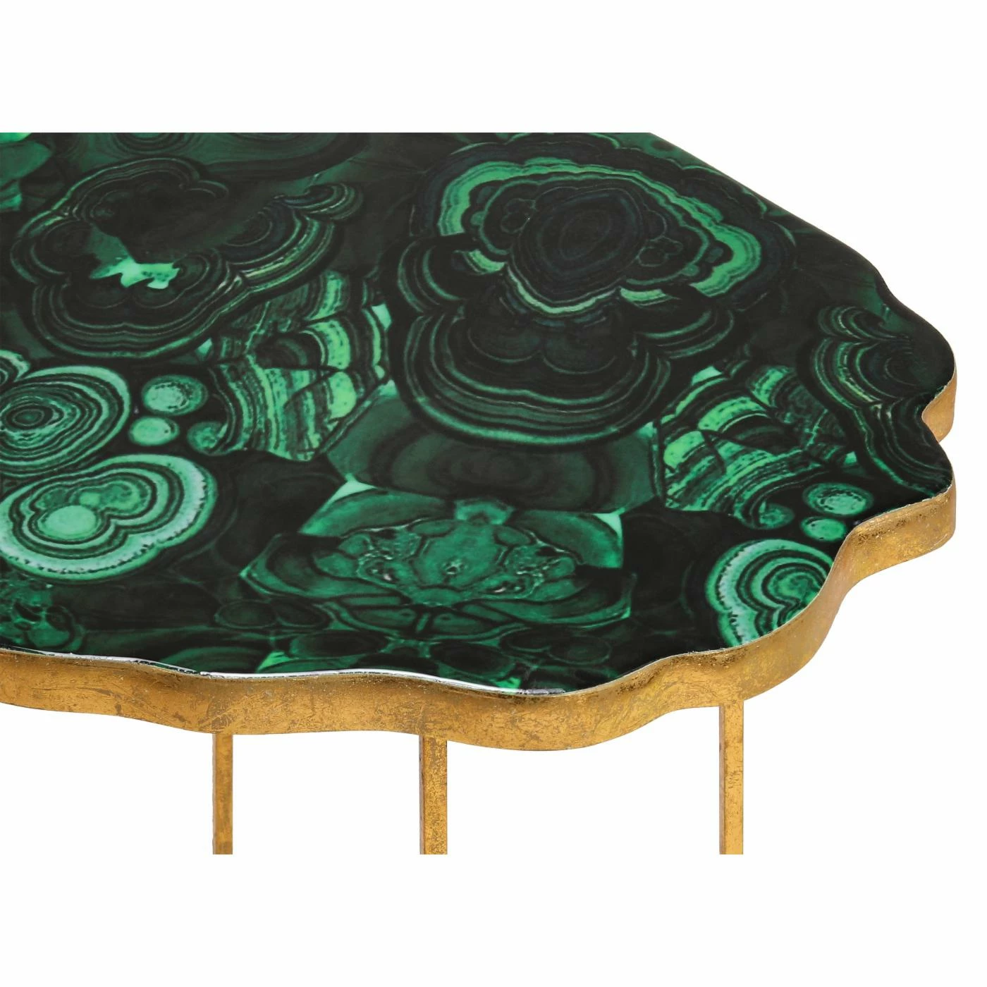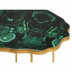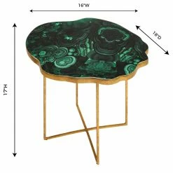 The TOV Furniture Lily Agate Side Table is the hidden treasure of your modern-glam, global, or eclectic living room. This opulent side table is handmade of sturdy iron with a luxe gold finish on the base and frame. The top features an irregular shape for the look of a real stone and has an enamel top to emulate emerald green agate.