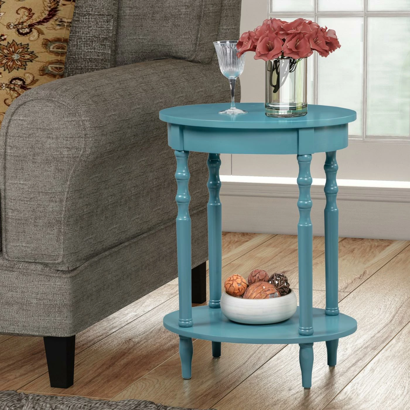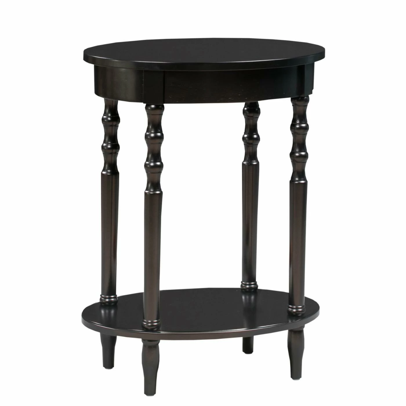 The Convenience Concepts Classic Accents Brandi Oval End Table has a classic, antique-inspired style that looks timeless in any space. The end table is constructed from durable engineered wood and solid rubberwood, with an oval tabletop with space for holding a lamp, reading material, a vase, and more. A lower open shelf adds additional storage or display space. The table’s traditional-style spindle legs offer an elegant accent that stands the test of time.