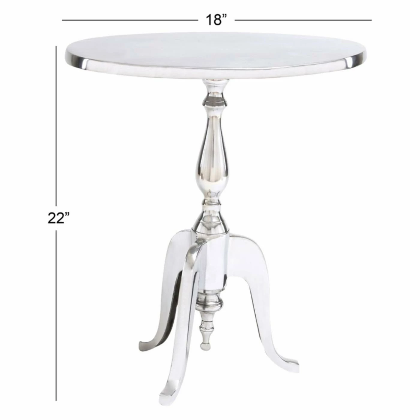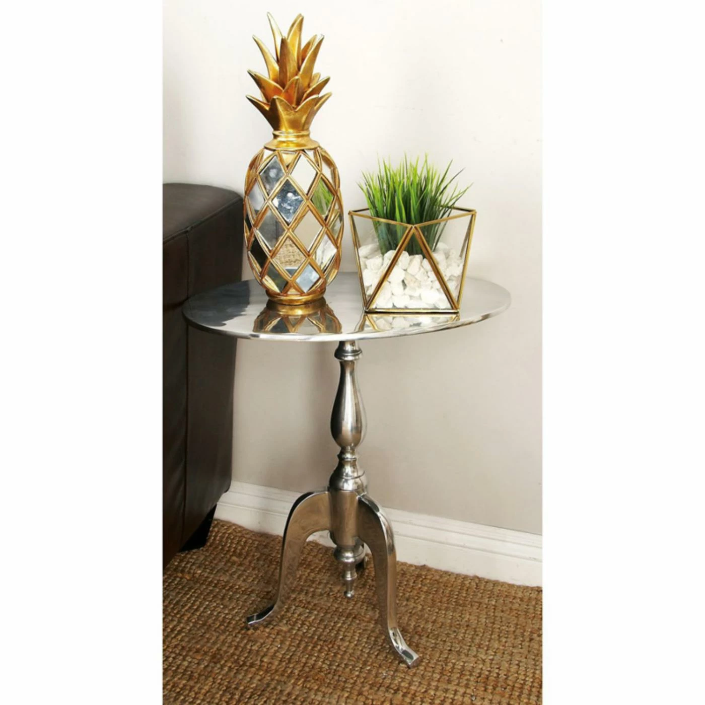 With its elongated oval top, the DecMode Oval Accent Table – Silver is a modern twist on the usual round pedestal table. Not only does the shape of the top set the table apart from the norm, but it’s also fashioned out of polished silver aluminum instead of traditional wood. The table consists of a round top, a teardrop leg, a ball finial, and three saber legs.