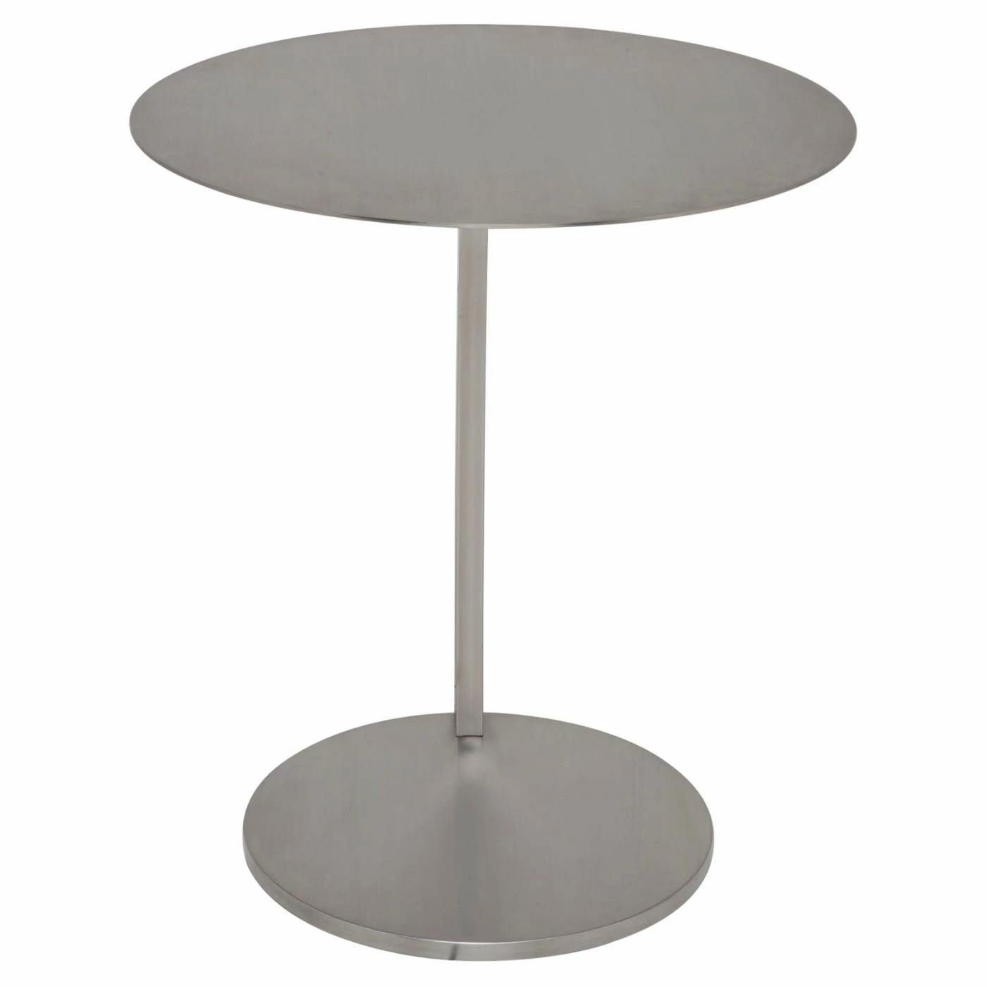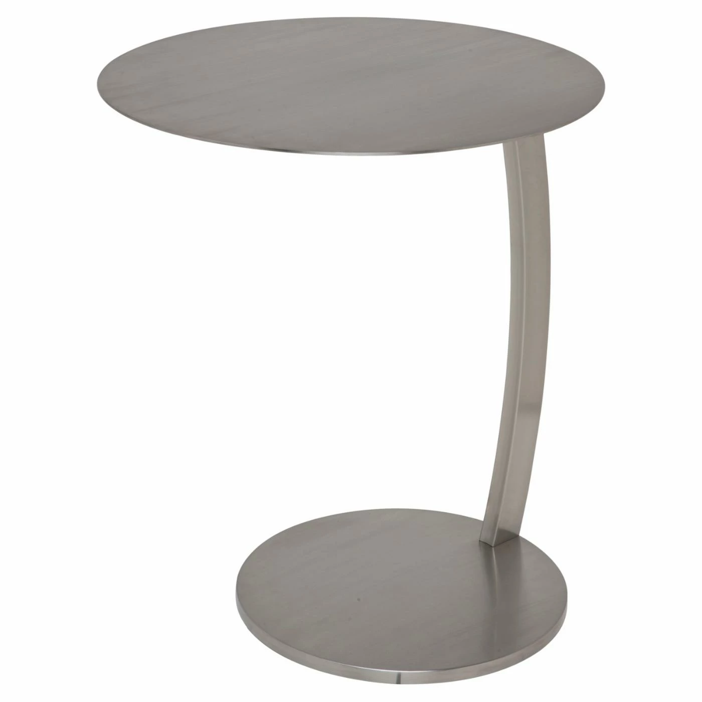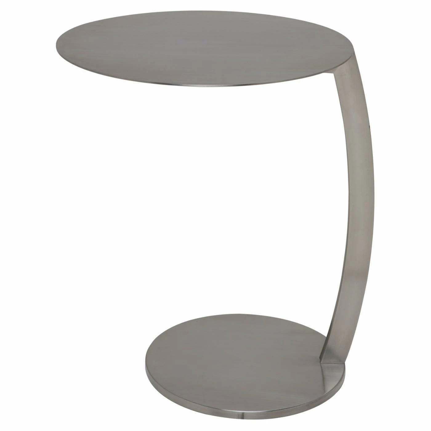 Like something out of science fiction, the amazing Nuevo Pria End Table is a timeless future-retro creation. This piece is made entirely from durable brushed stainless steel and features a very nifty modern design. One disc at the base joins to a disc-shaped table top via a single curved beam at one end. This piece looks ready to take off and explore the stars, so fare upward, voyager. This table measures 19.25W x 17.75D x 22H inches.