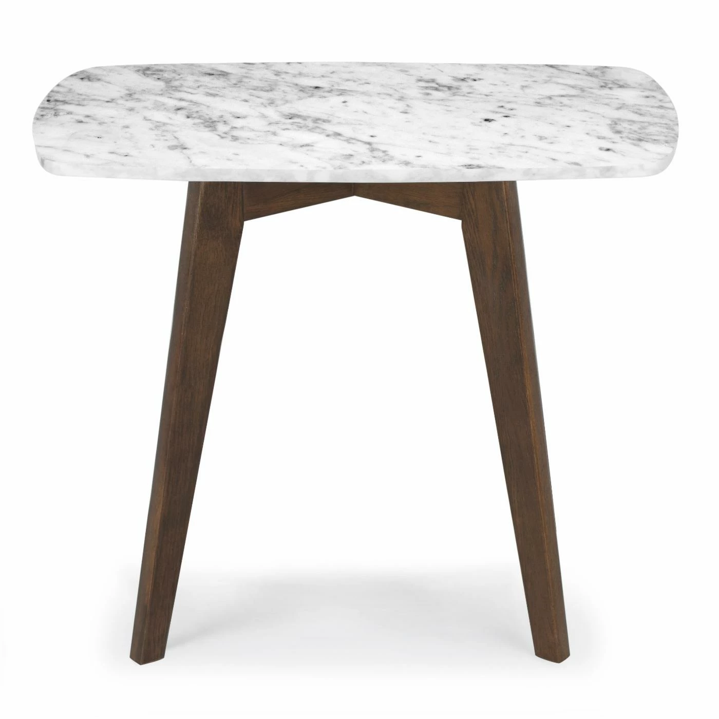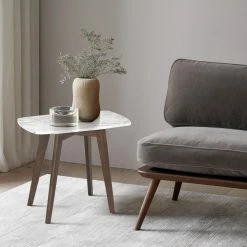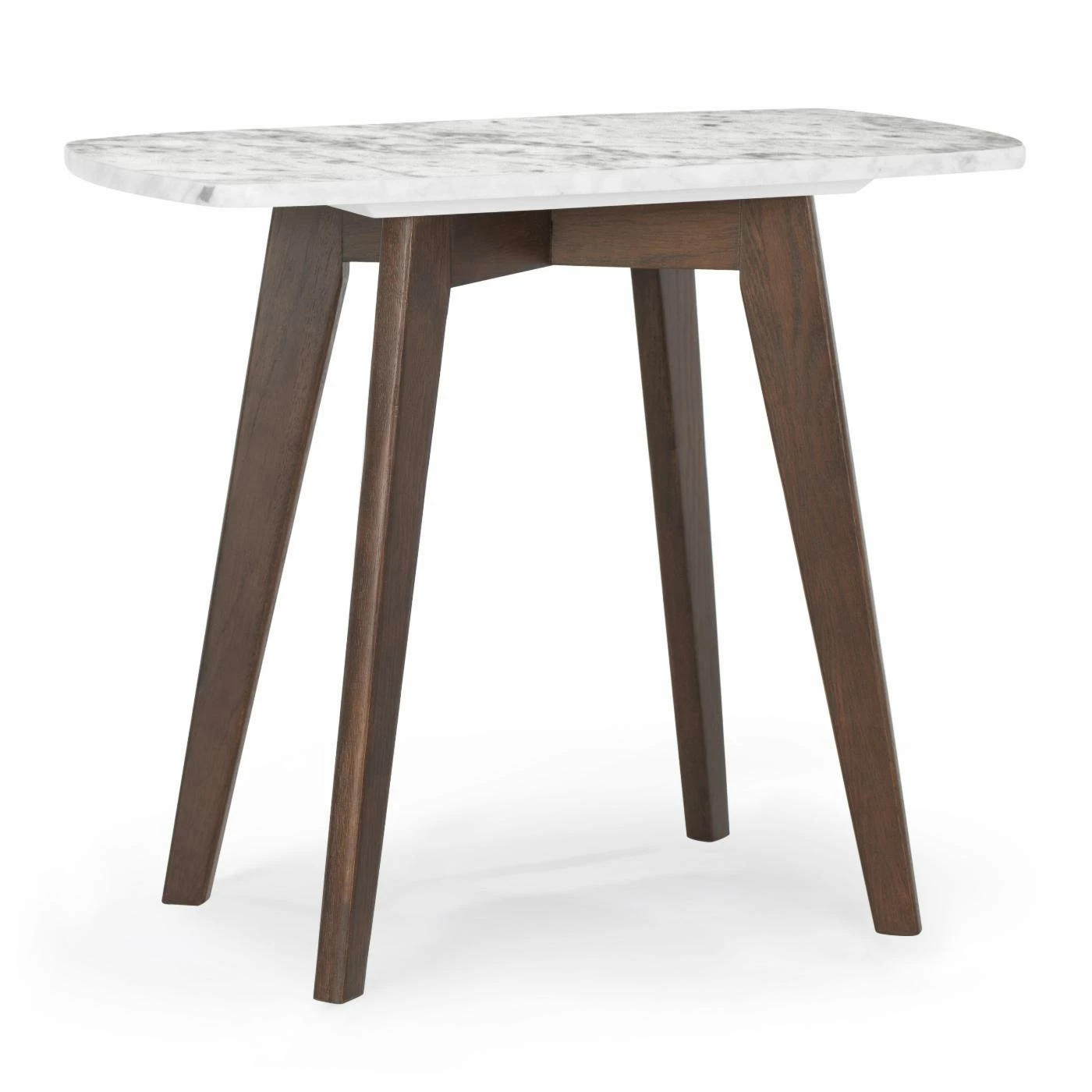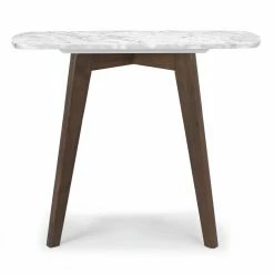 Up the ante in your stylish space with the Poly & Bark Riley Marble Rectangle End Table designed to steal the scene. Substantial Italian Carrara white marble in a rectangle silhouette reveals an expanse of natural veining and color variations, making each table a one-of-a-kind work of art. Gently angled legs formed from American white oak in a rich walnut or natural finish allude to mid-century modern ethos. This versatile piece welcomes a vintage-style lamp or collection of beautifully potted plants.