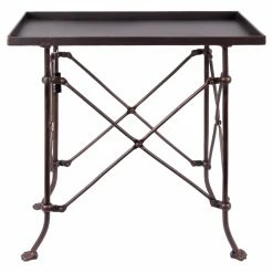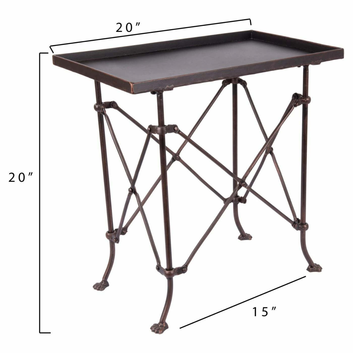Add a bold element to your favorite space with the 3R Studios Bronze Metal End Table, crafted of metal in a deep metallic finish with a tray-style top. This unusual end table is accented with angled cross bars on the bottom that bring the piece an industrial finishing touch. Choose from the available finish options for a customized table.