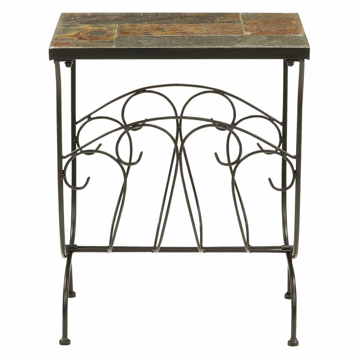 This classic coffee table features a handy magazine rack built into its durable black frame, making it doubly useful at the end of a couch or next to a recliner. It looks great and is build to last in both forums of style and strength. The Slate Top Magazine End Table is definitely for a sensible consumer with great taste.