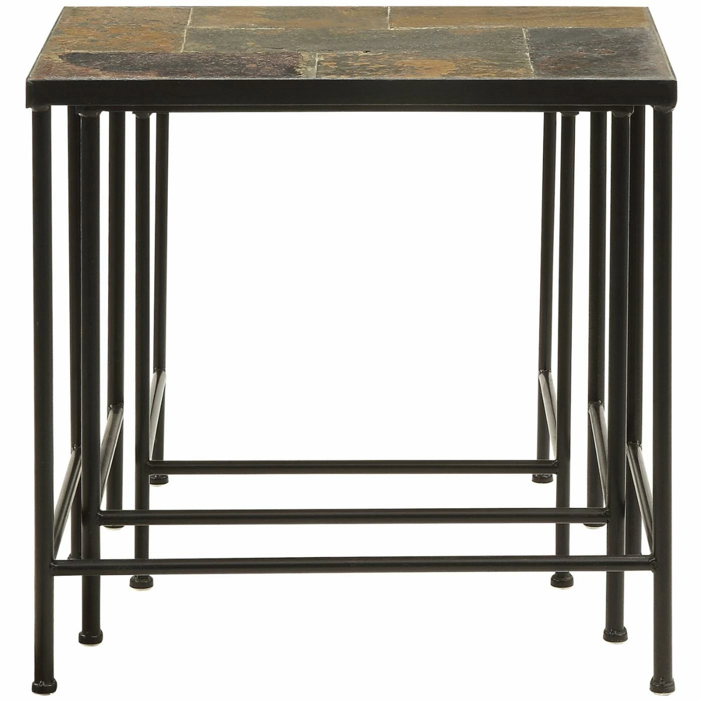 If only weekends could be configured this easily. The 4D Concepts Slate Top Nesting Tables let you to decide exactly how much space you want free and how much surface area you need. Each table is soundly built with solid black metal frames and topped with attractive, alternating-tone slate tiles. Create a single tiered table, use the tables separately, or stack them up to store.